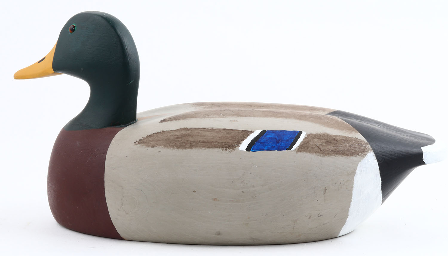 Mallard Drake by Bill Hughes, Albion N.J. GE, hollow wood, original paint, structurally excellent, branded on bottom. Grade: Excellent ++ - Value: 30 to 100