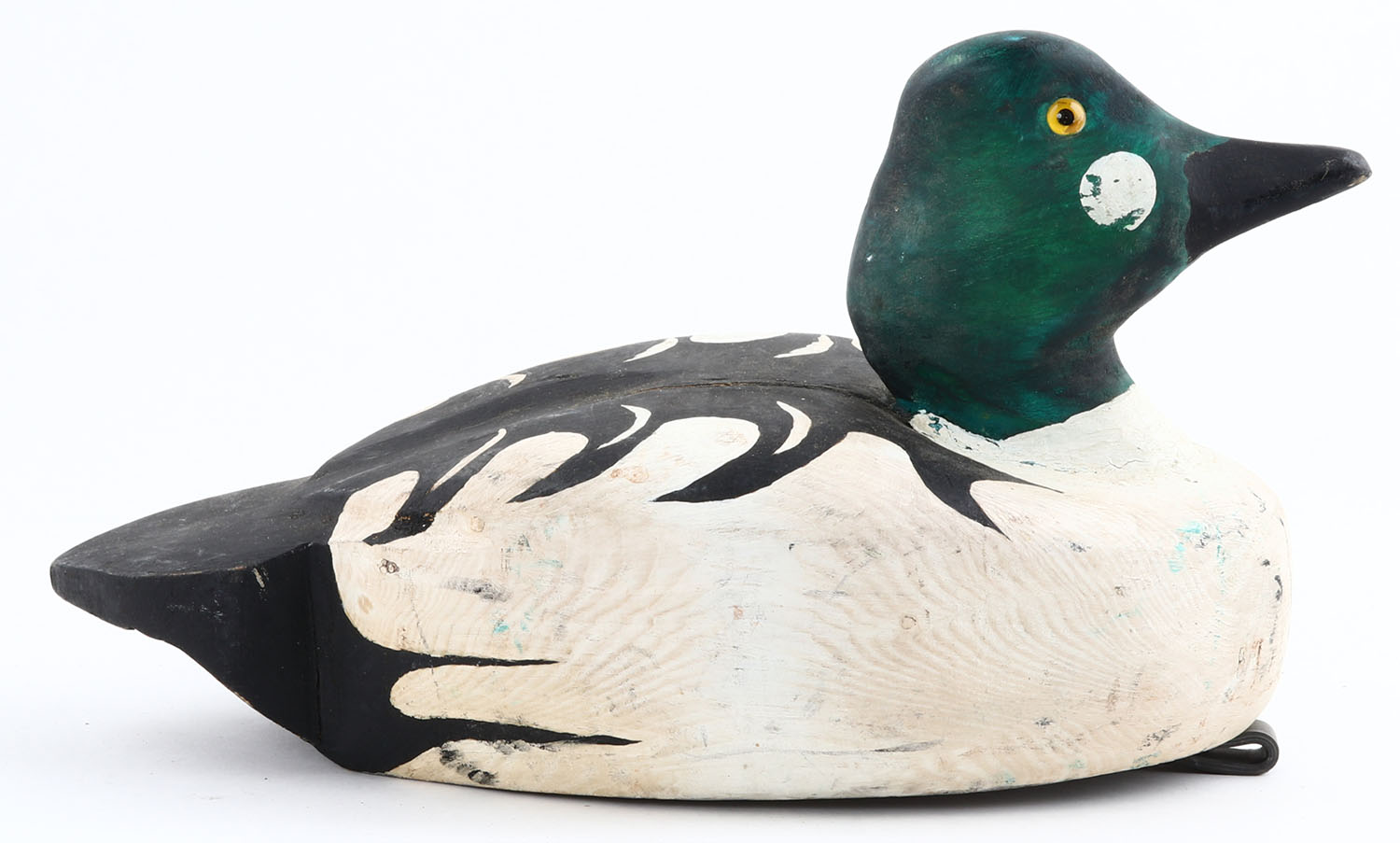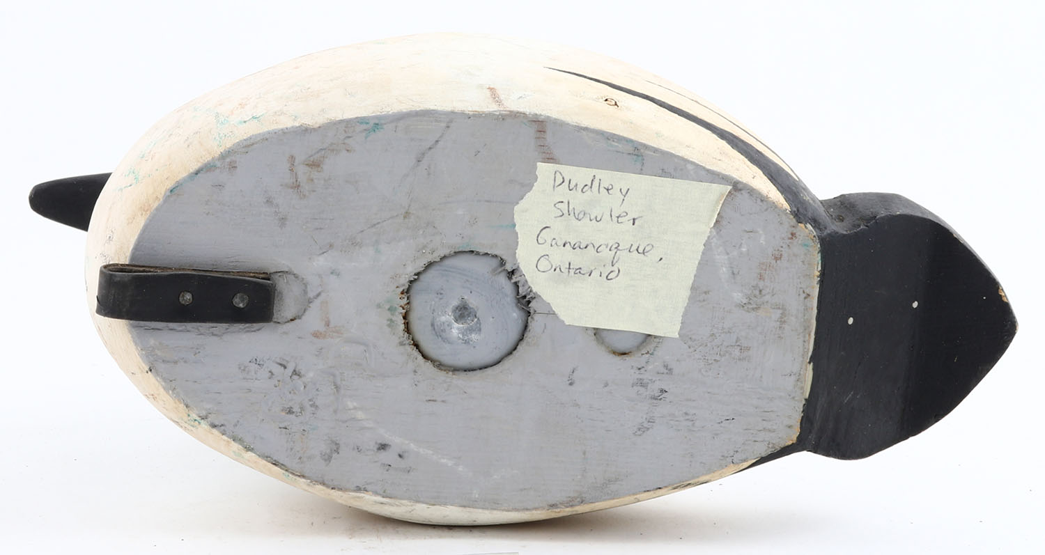 Goldeneye Drake by Dudley Showler, Gananoque, Ont., GE, solid wood, original paint, structurally excellent, 12'' OAL. Grade: Excellent - Value: 30 to 60