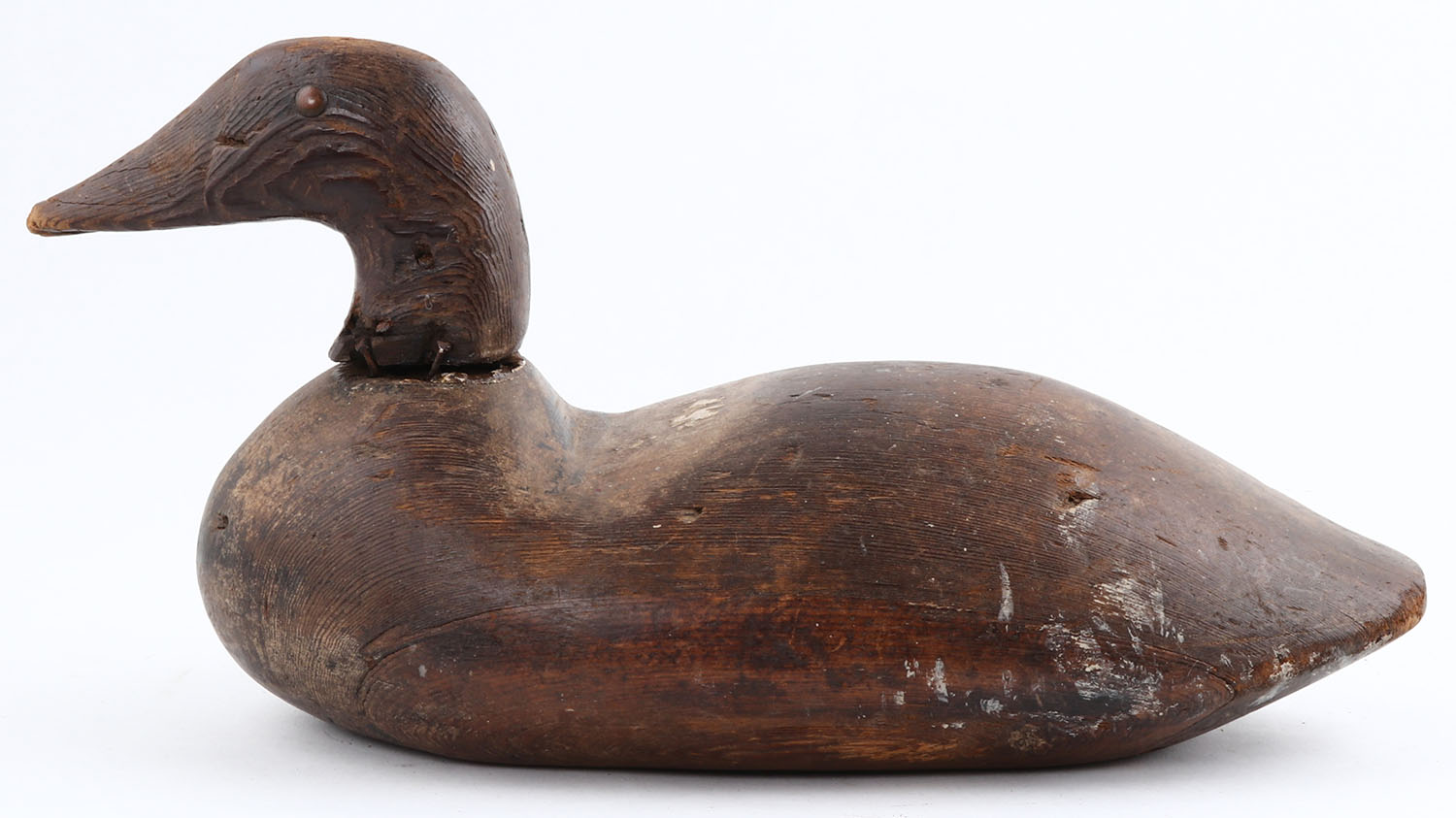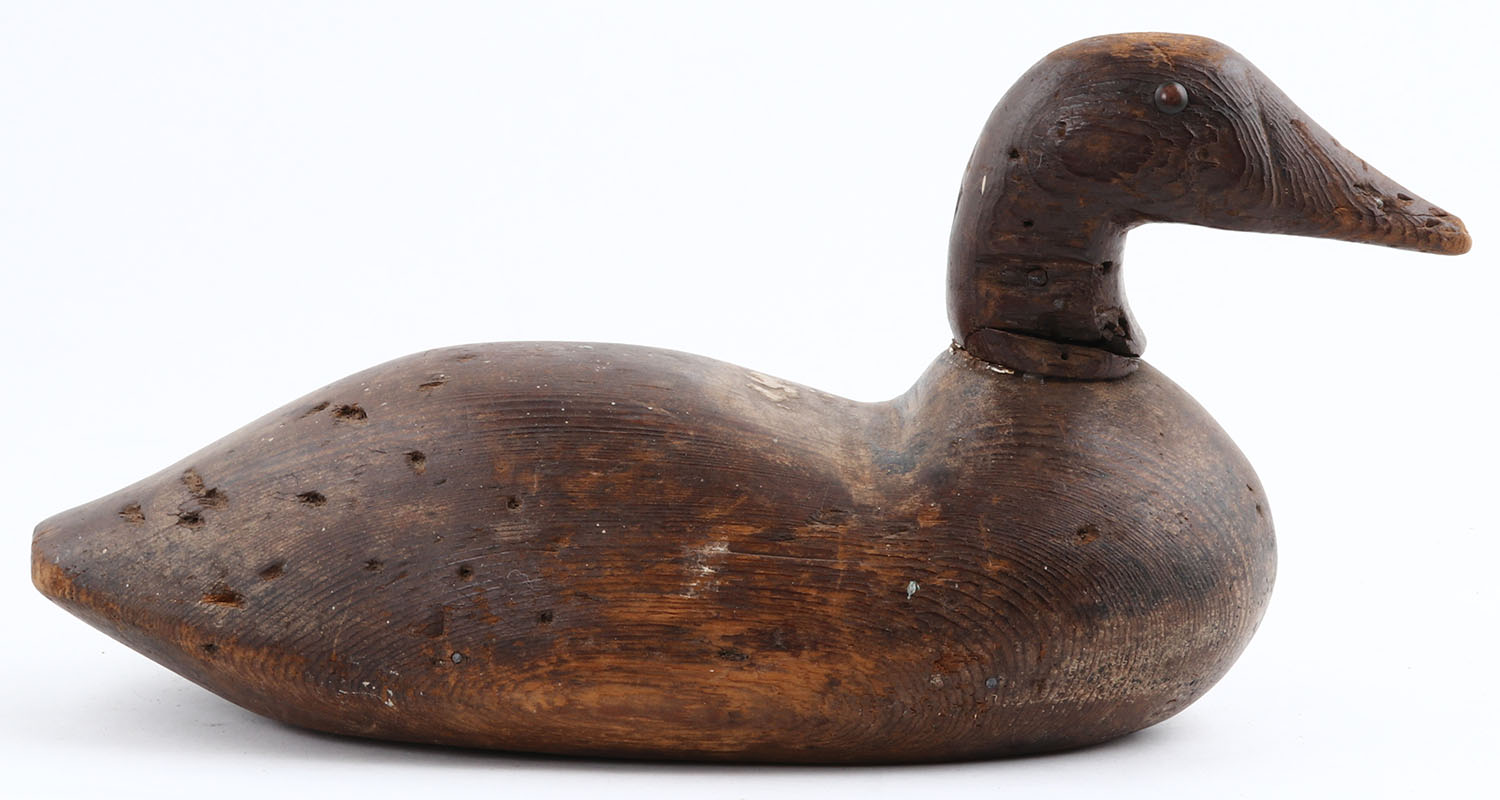 Canvasback Drake by unknown maker, TE, solid wood, almost no paint, neck is loose. Grade: Good - Value: 10 to 50