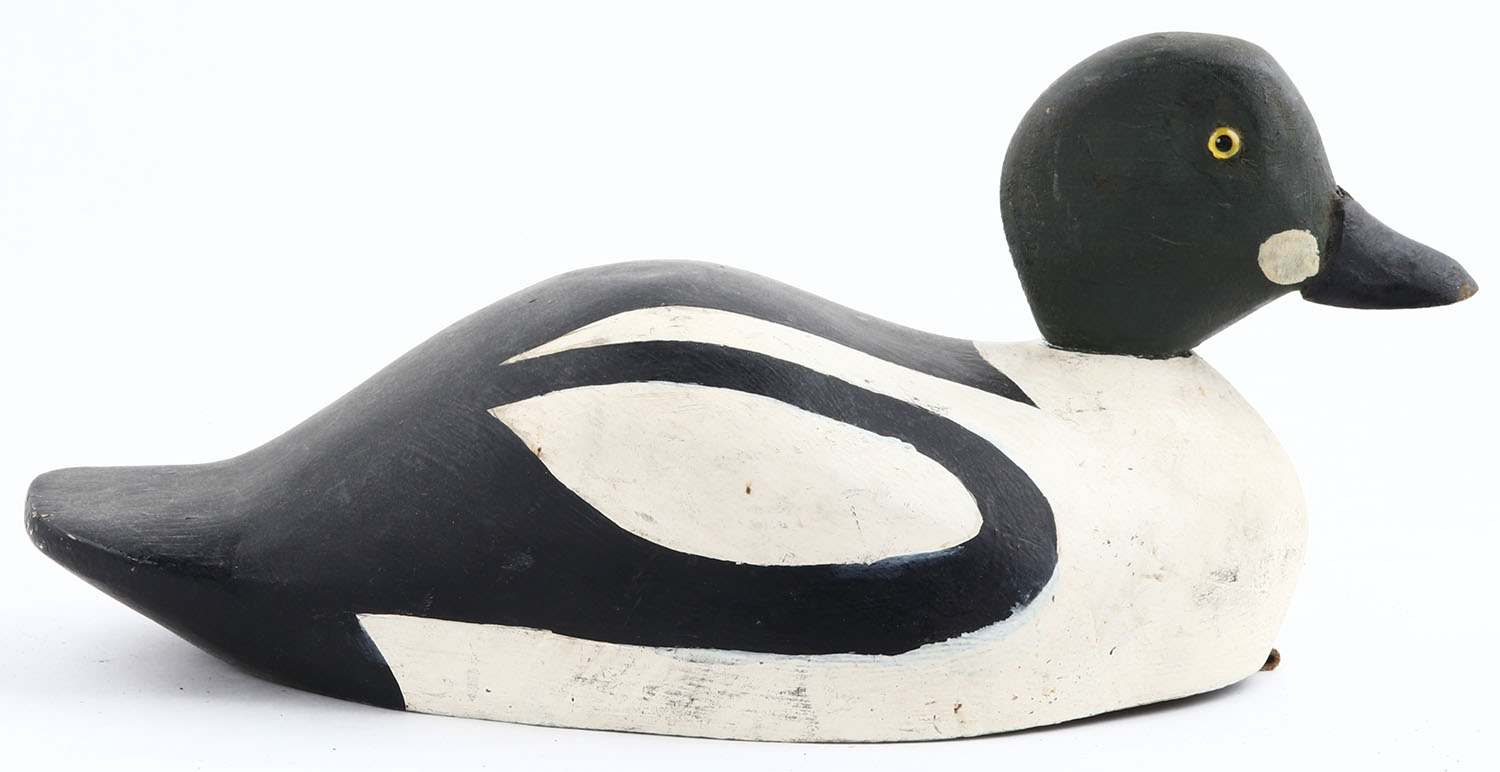 Goldeneye Drake by unknown maker, GE, hollow wood, original paint, structurally excellent. Grade: Excellent - Value: 20 to 80