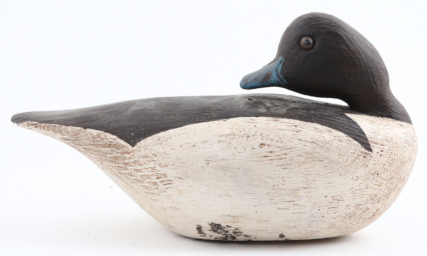 Preening Bluebill Hen by unknown maker, GE, solid wood, original paint, structurally excellent. Grade: Excellent - Value: 30 to 60