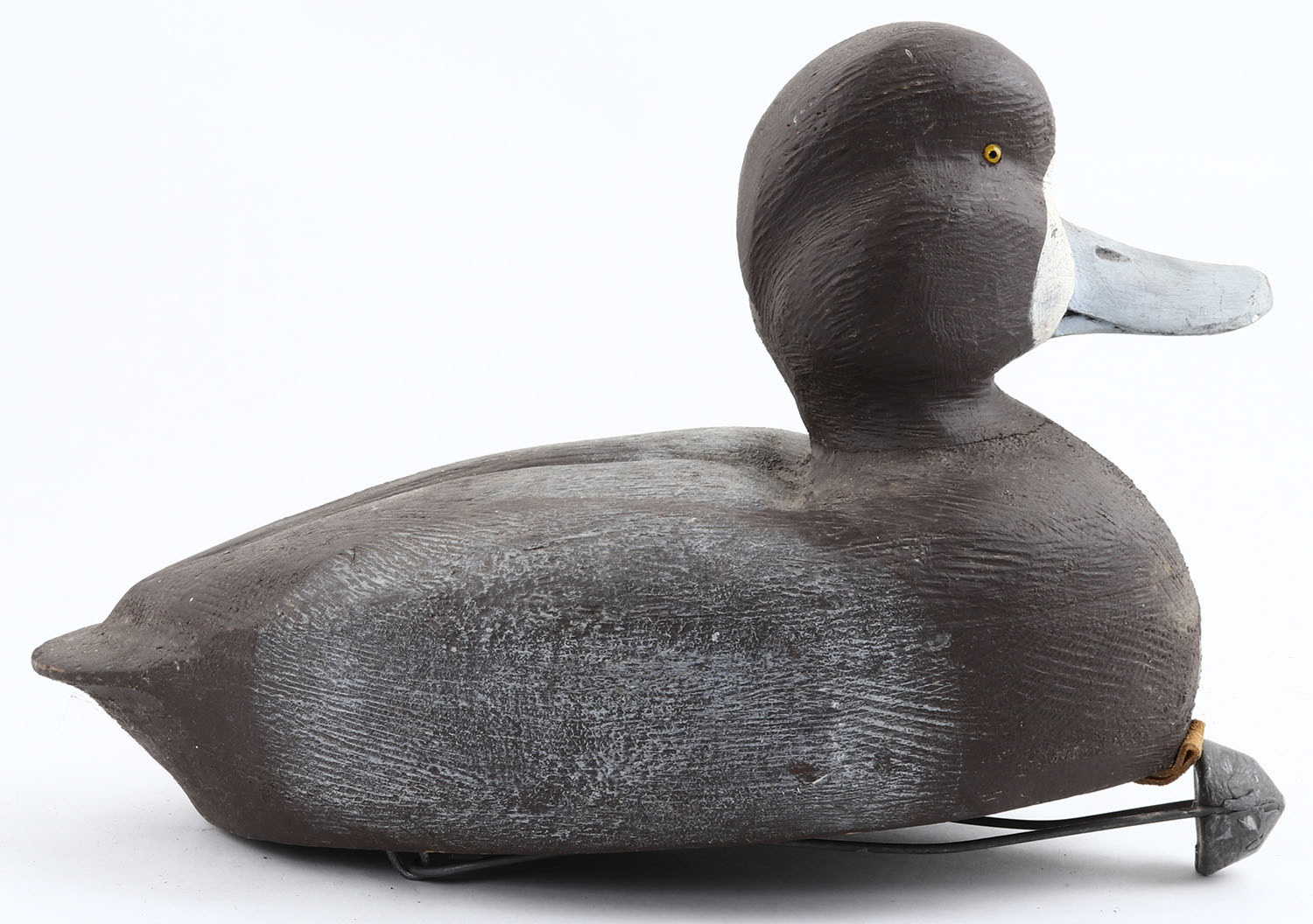 Bluebill Hen by unknown maker, branded T. Brooks, GE, hollow wood, original paint, has swing weight, structurally excellent. Grade: Excellent - Value: 40 to 80