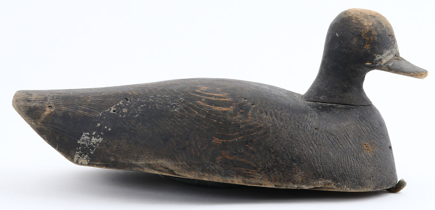 Bluebill Drake by unknown maker, no eyes, solid wood, original paint, structurally excellent. Grade: Very Good ++ - Value: 10 to 60
