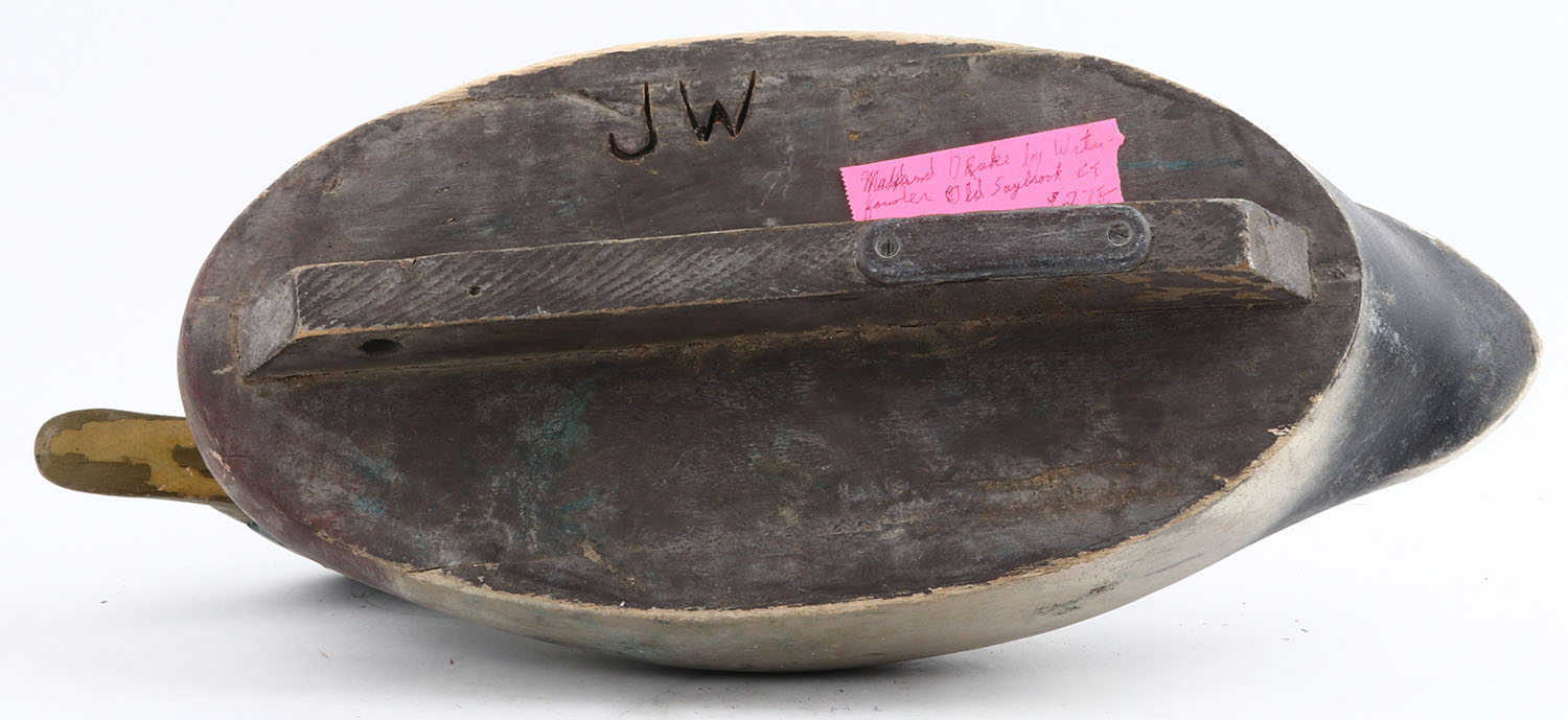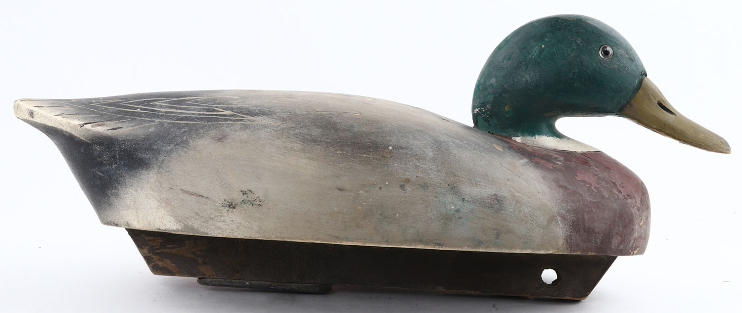 Mallard Drake by Wildfowler, Old Saybrook, CT, GE, solid wood, repainted head, structurally excellent. Grade: Excellent - Value: 10 to 30