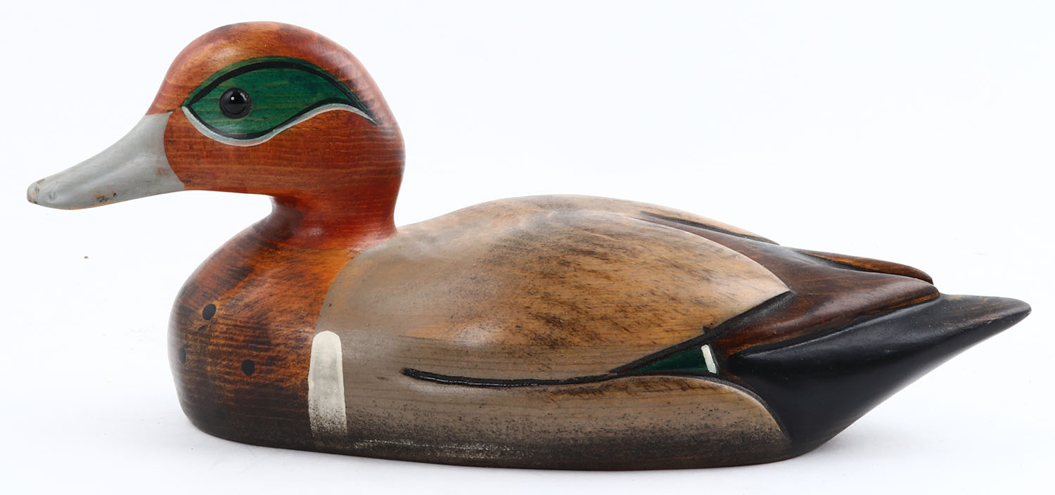 Greenwing Teal Drake by Tom Taber, GE, solid wood, original stain, structurally excellent. Grade: Excellent ++ - Value: 20 to 60