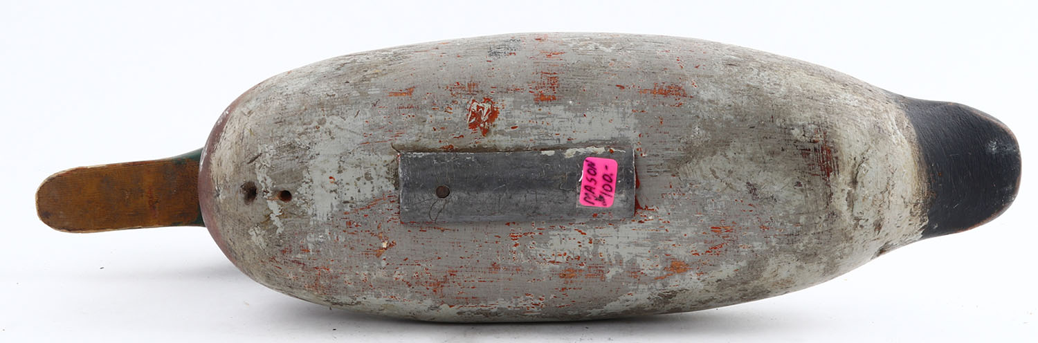 Standard Mallard Drake by Mason Decoy Company, Detroit, MI, 1896-1924. PE, solid wood, original paint, structurally excellent. Grade: Very Good + - Value: 50 to 100