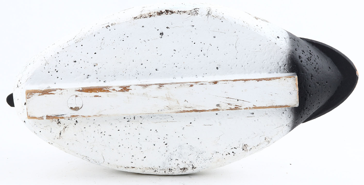 Goldeneye Drake by LL Bean, unmarked on keel, glass eyes, solid cork body, wood head, original paint, structurally excellent, 15'' OAL. Grade: Excellent ++ - Value: 20 to 60