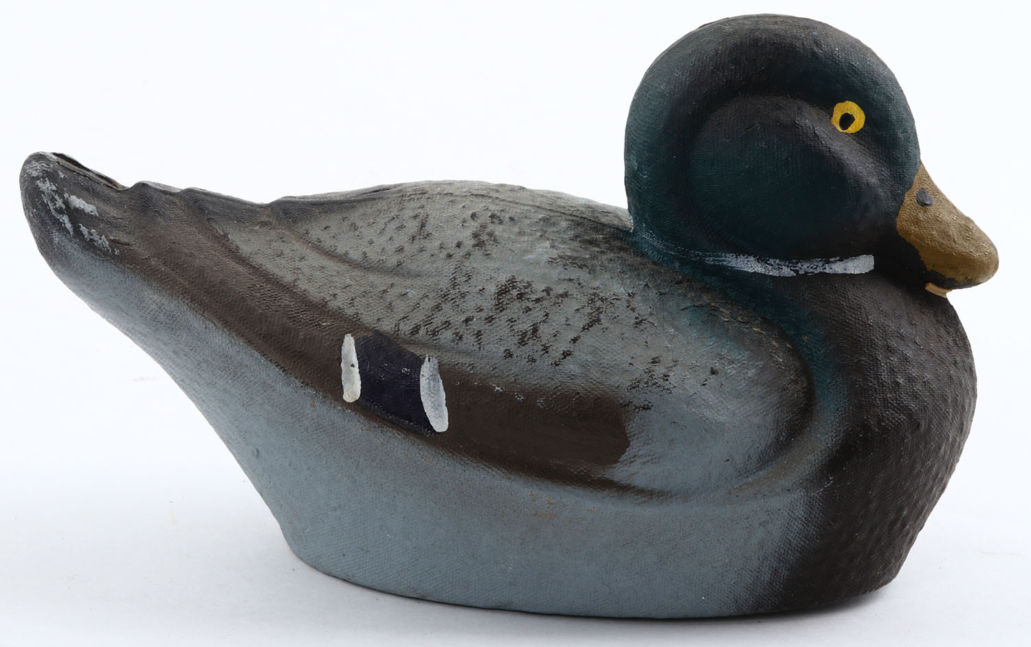 SALESMAN SAMPLE Mallard Drake by Ariduk General Fiber Co, Model 375, circa 1949-1975, PE, mint original paint, this is the larger size of the salesman samples, 7'' OAL. Grade: Excellent ++ - Value: 40 to 200