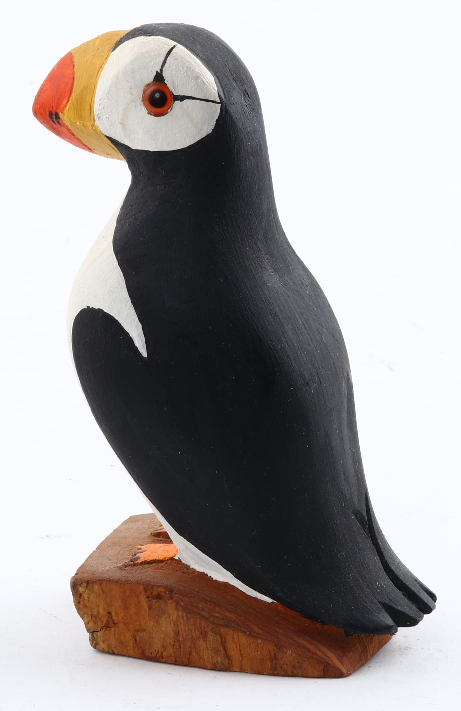 Miniature Horned Puffin by Ed, Moe, Willow AK, GE, mint original paint, 5'' tall. Grade: Excellent ++ - Value: 10 to 30