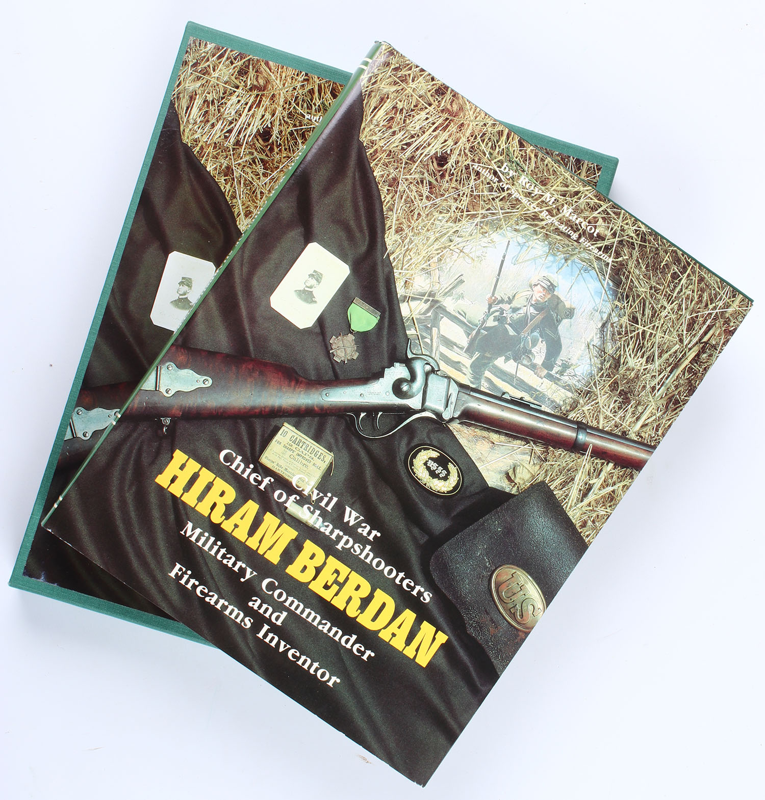 Civil War Chief of Sharpshooters, Hiram Berdan - Military Commander and Firearms Inventor by Roy M. Marcot 1989, 9'' x 11 1/2''. 342 pages, pages clean, binding tight, hardcover and dustjacket mint, slipcase excellent. Value: $250 Grade: MINT - Value: 10 to 250