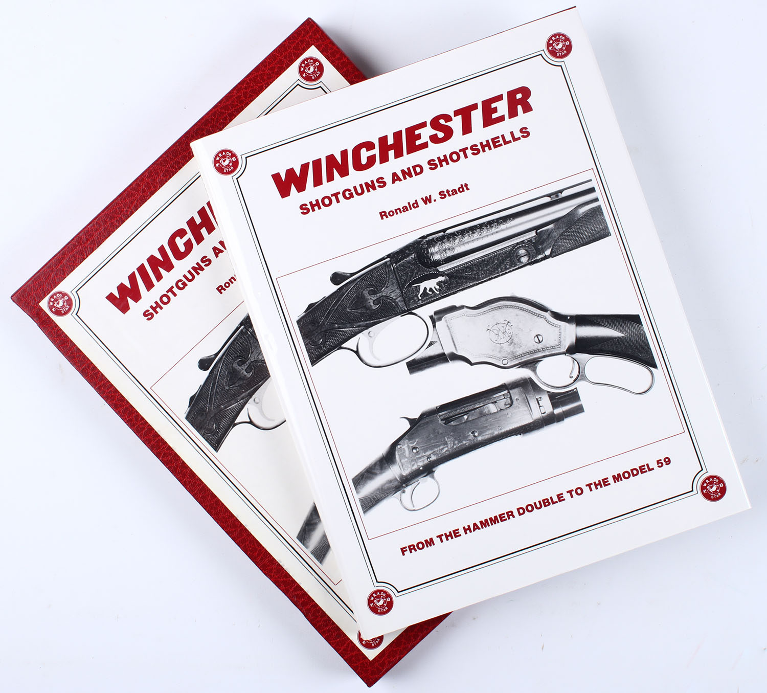 Winchester: Shotguns and Shotshells (From the Hammer Double to the Model 59). By Ronald W. Stadt 1984, 9'' x 11 1/2''. 184 pages, pages clean, binding tight, hardcover mint, hardcover slipcase mint. Value: $150 Grade: MINT - Value: 10 to 150