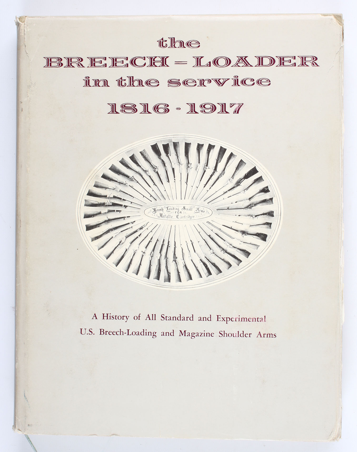 The Breech-Loader in the Service 1816-1817: A History of All Standard and Experimental U.S. Breechloading and Magazine Shoulder Arms 1965 by Claud E. Fuller, 8 1/2'' x 11''. Pages clean, binding tight, hardcover very good, dustjacket has tears. Value: $40 Grade: Very Good ++ - Value: 2 to 40