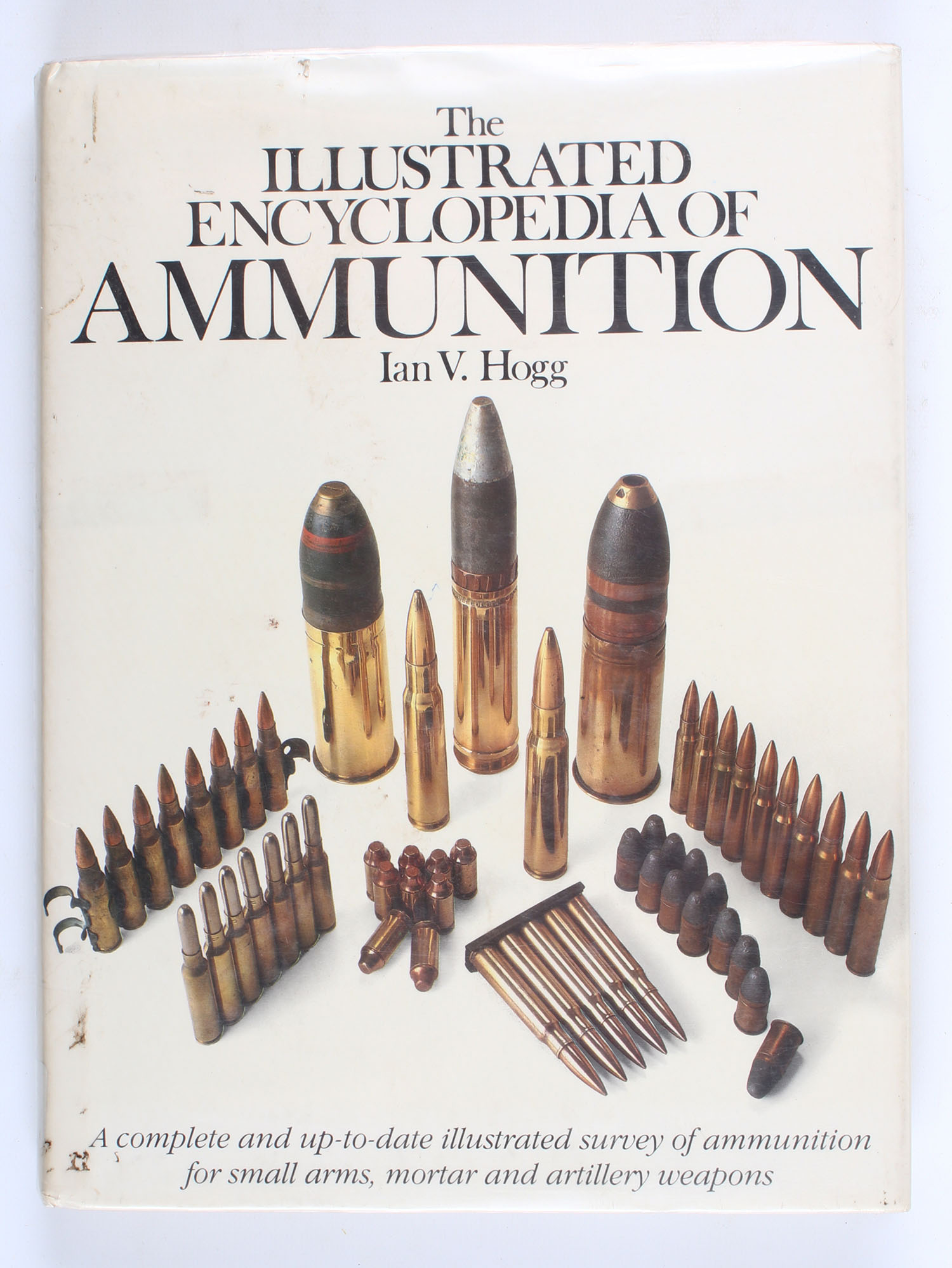 The Illustrated Encyclopedia of Ammunition by Ian V. Hogg 1985, 9'' x 12''. 256 pages, pages clean, binding tight, hardcover very good, dustjacket has stains. Value: $30 Grade: Very Good ++ - Value: 3 to 30