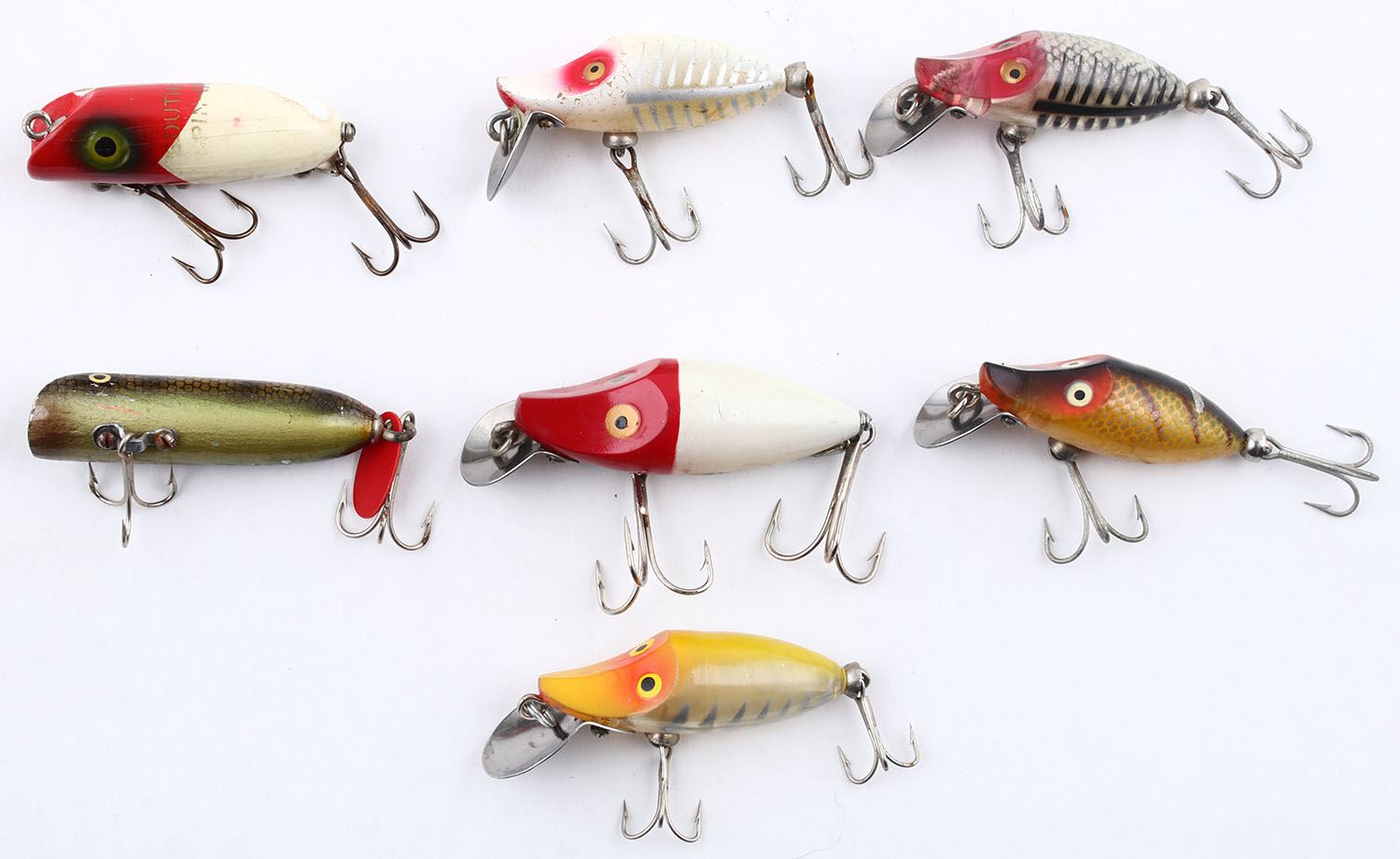Lot of 7 Fishing Lures (Heddon, South Bend & Unmarked). Grade: Very Good ++ - Value: 20 to 50