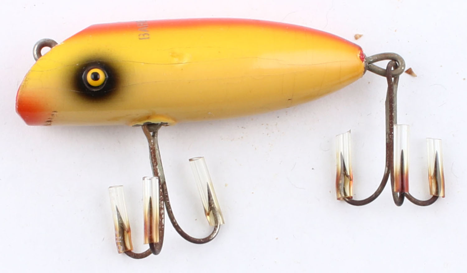 | South Bend Babe-Oreno, wood lure, TE, red/orange/yellow, marked ...