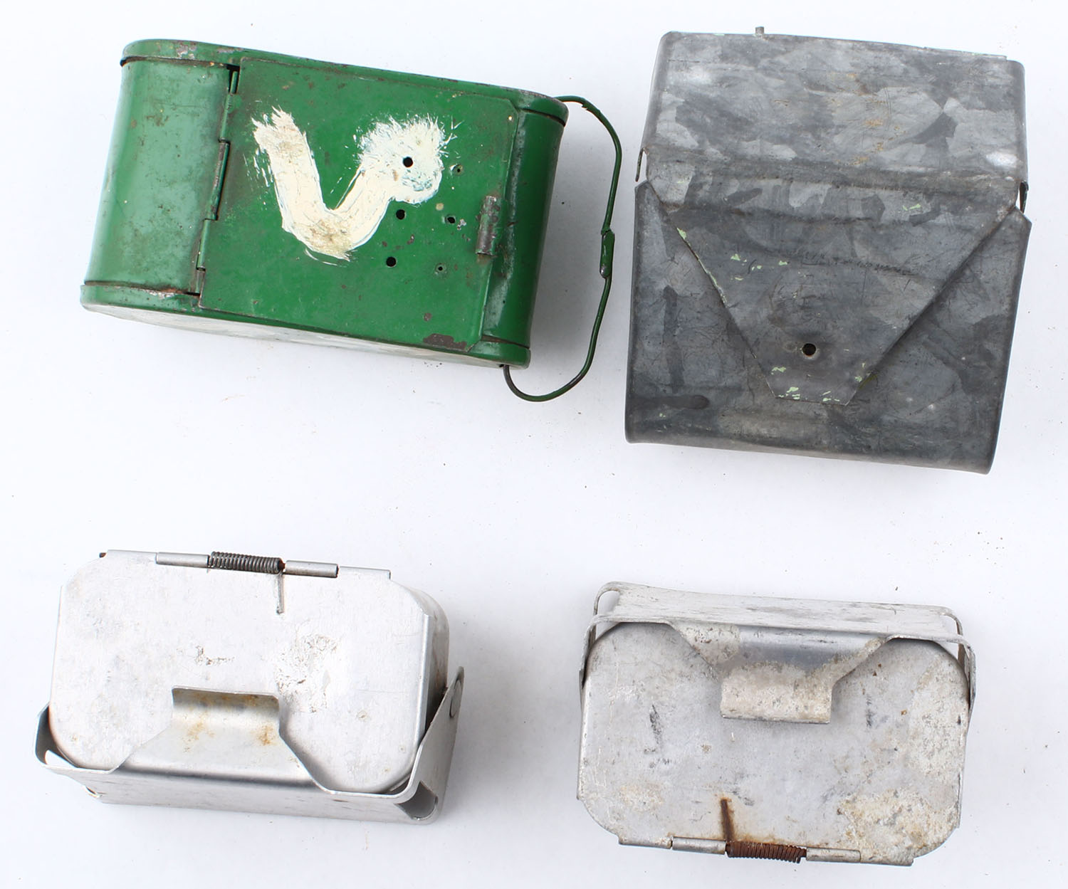 Lot of 4- bait boxes, all have light wear from normal use. Grade: Very Good - Value: 10 to 50