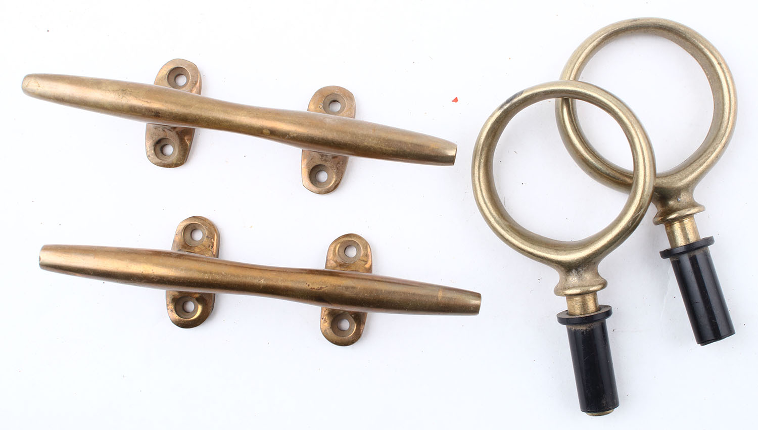 Lot of (2) cleats & (2) eyelets for a boat. Grade: Very Good - Value: 10 to 40