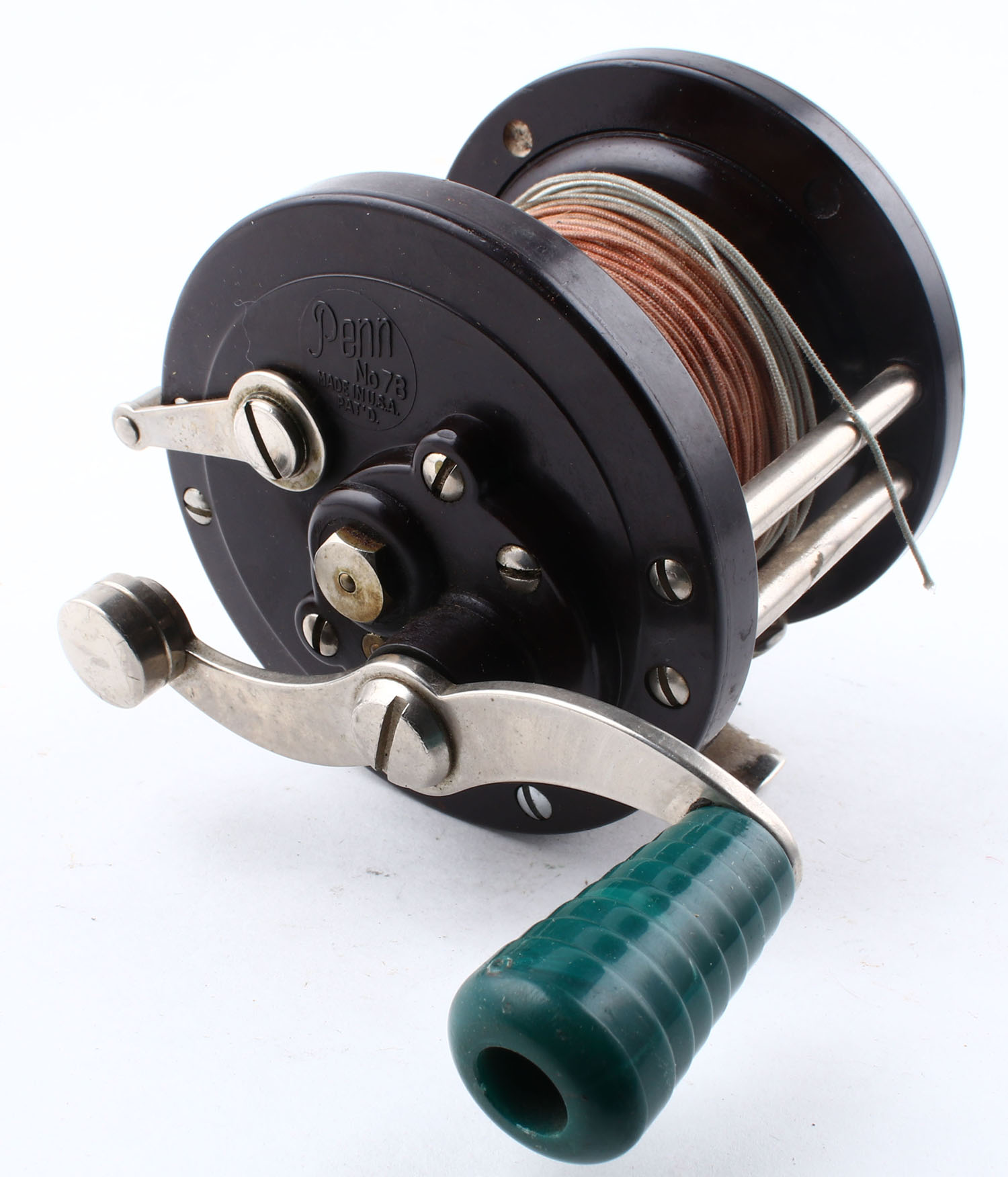 Penn No 78, 30-180, single handle, marked on right side plate & bottom of reel seat, strong click, smooth reel turn. Grade: Very Good++ - Value: 10 to 50