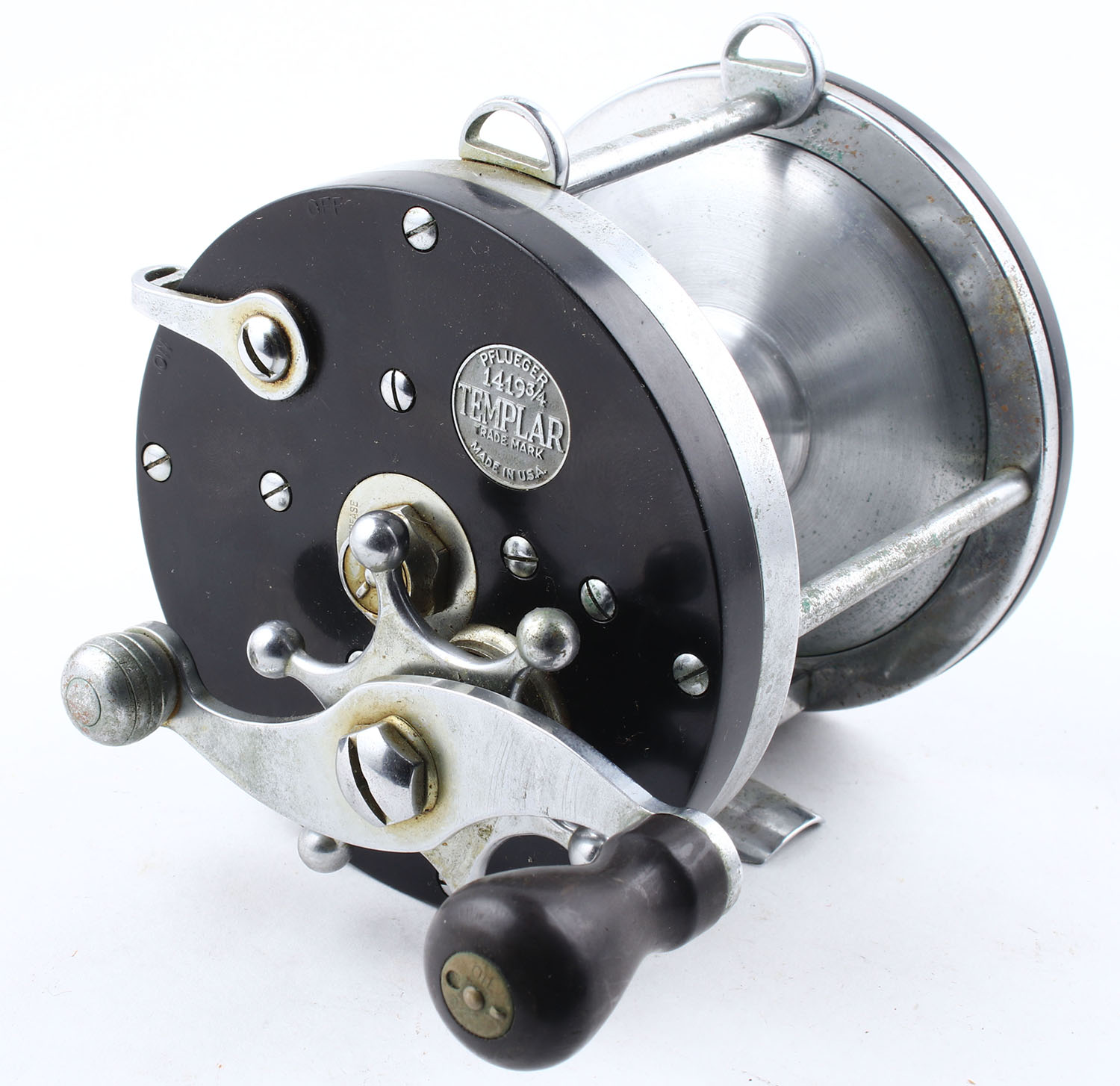 Pflueger Templa No 1419 3/4, single handle, marked on right side plate, strong click, smooth reel turn. Grade: Excellent - Value: 10 to 50