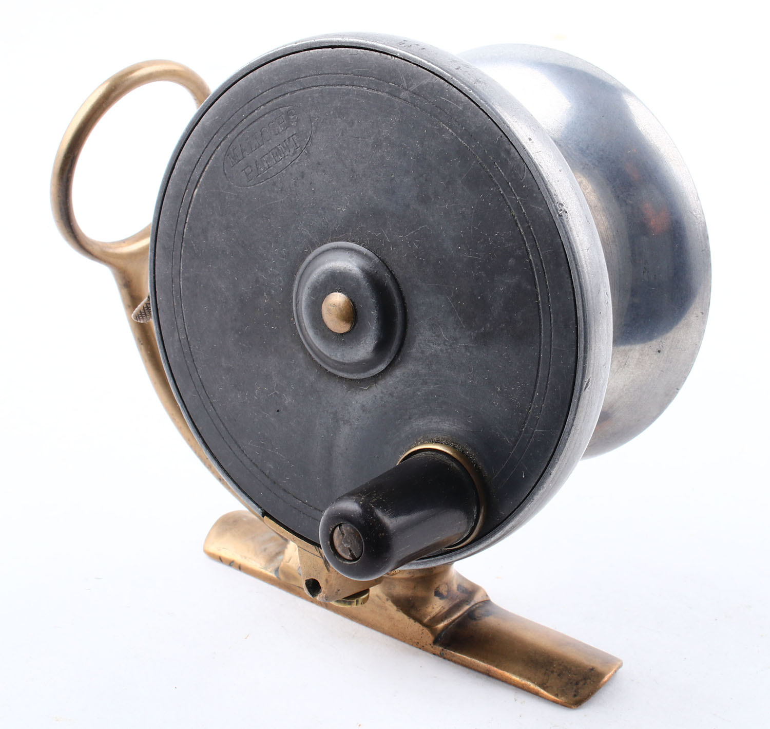 Vintage Fly Reel, marked ''MALLOCH'S PATENT'' on right side plate, swivel brass base & eyelet, clear clicks, smooth reel turn. Grade: Very Good+ - Value: 10 to 50