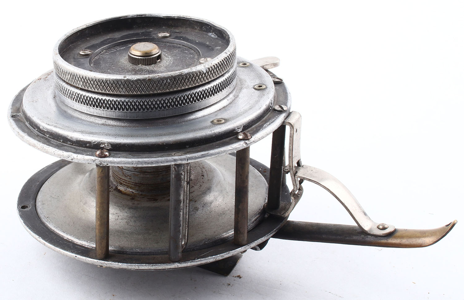 Pflueger Superex No 788, Automatic Fly Reel, has Bulldog logo in center of top cap, no handle, marked on top center plate, wind up mechanism appears to function properly, can't get the reel lever to function/retract spool. Grade: Fair - Value: 2 to 20