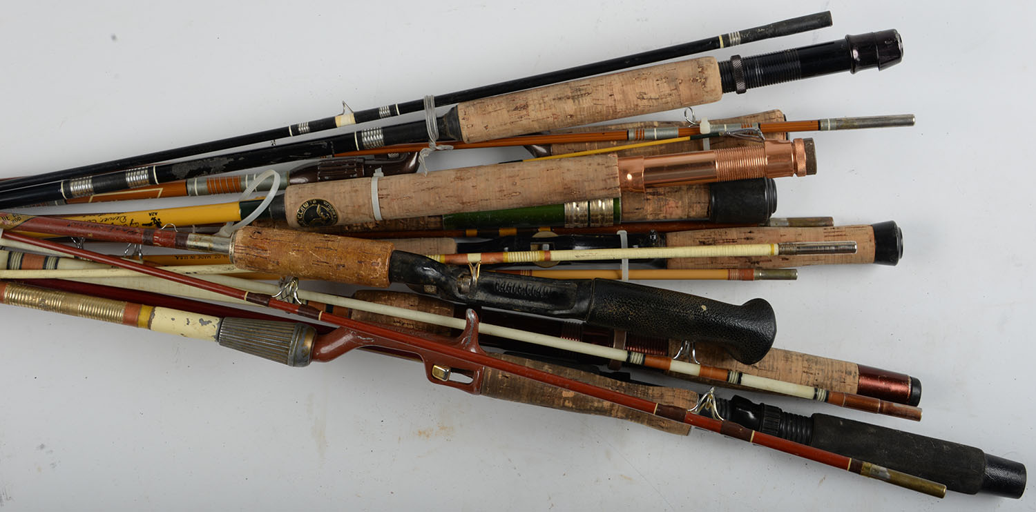 Lot of fishing rods, some rods may not be complete. Grade: Very Good - Value: 10 to 50
