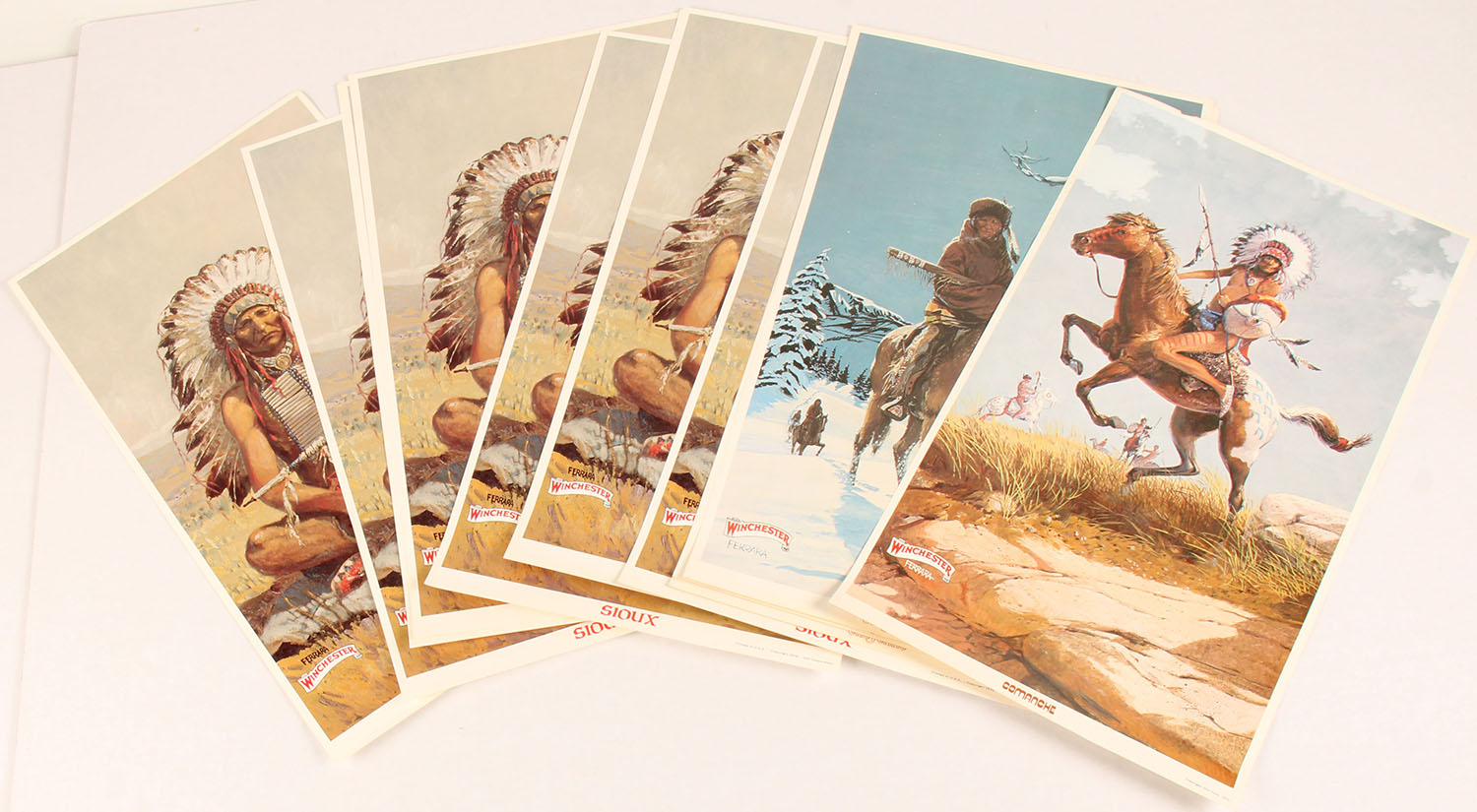 Lot of 14 Winchester Native American Posters (1) Comanche, (3) Cheyenne, (10) Sioux, all full color images, all excellent colors. Grade: Excellent + - Value: 20 to 60