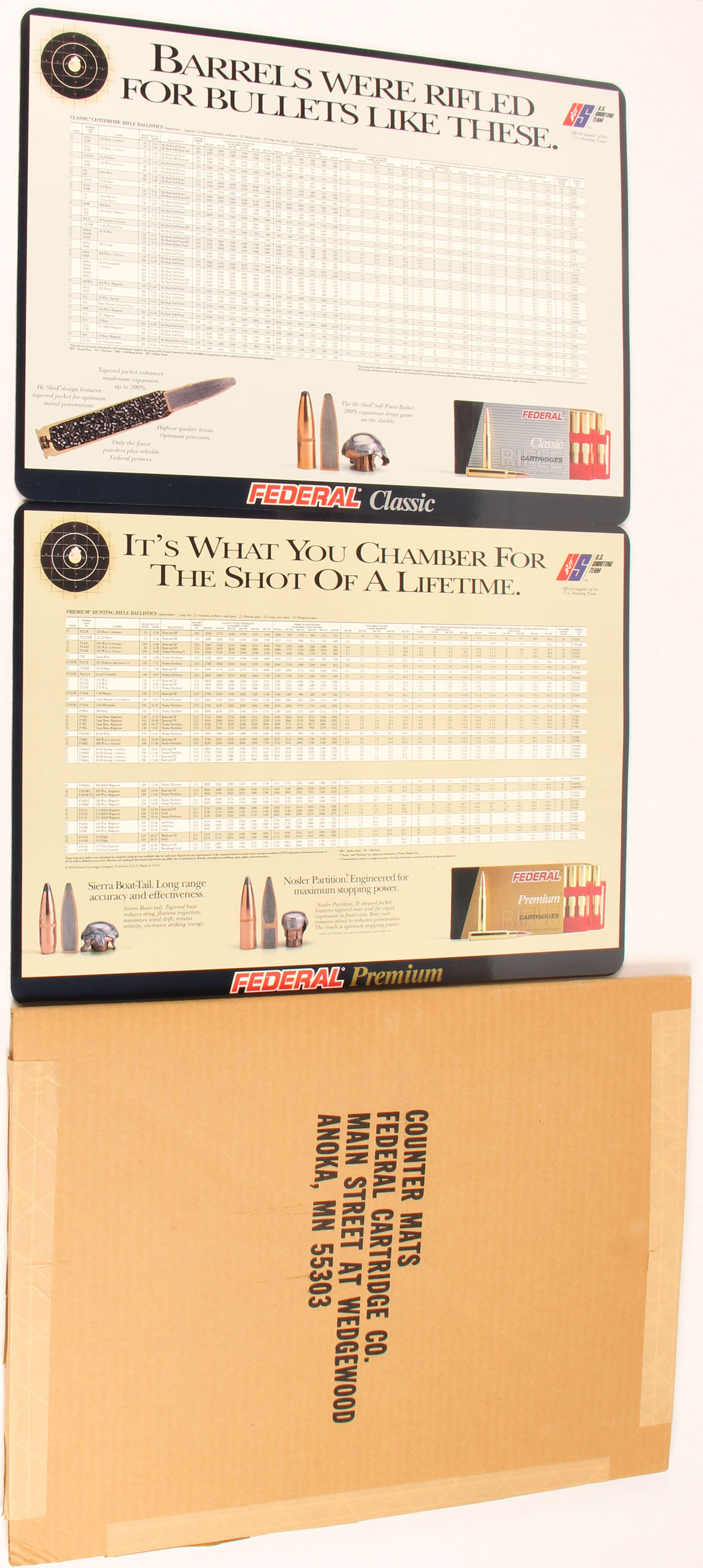 Lot of 2 Federal Ammunition Counter Displays , Federal Classic & Federal Premium, comes in original cardboard sleeve. Grade: Excellent ++ - Value: 10 to 50
