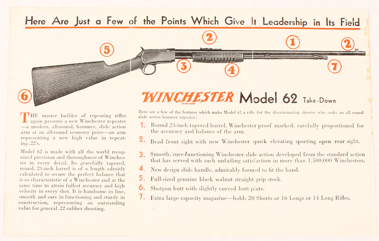 Winchester Model 62 Brochure. Grade: Very Good ++ - Value: 10 to 50