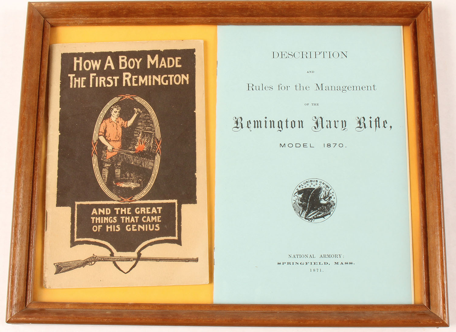 Lot of 2 Remington Booklets, framed, 12'' x 9 1/2''. Grade: Excellent - Value: 10 to 40