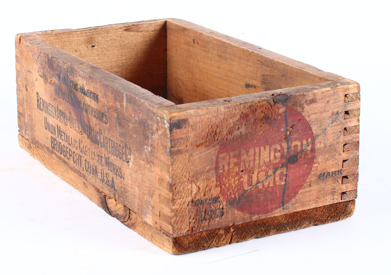 Remington UMC wood crate, black and red print is solid and crate has age soiling. Grade: Very Good ++ - Value: 20 to 60