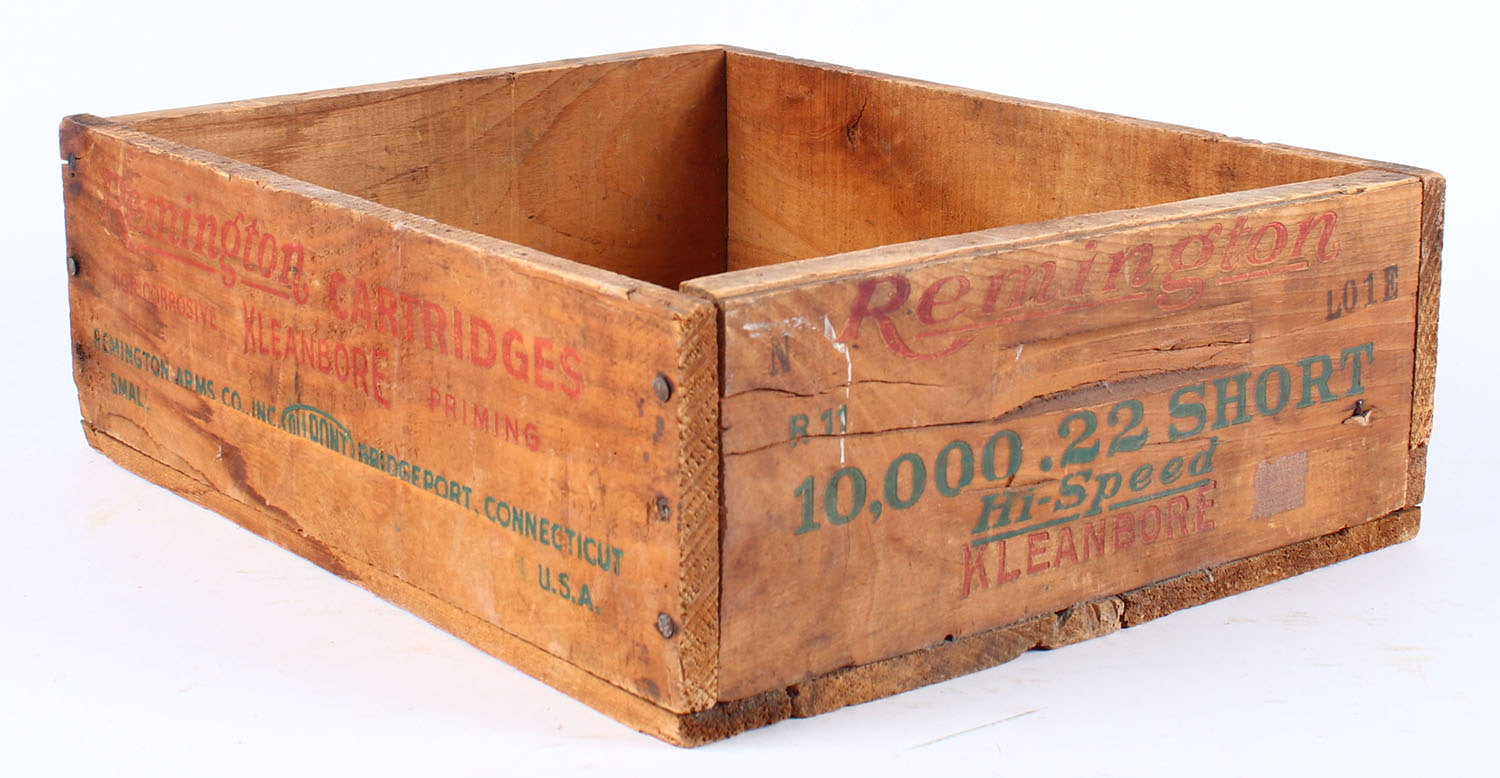 Remington, .22 Short Hollow Point Hi-Speed, red, & green print is solid and crate is nice. Grade: Excellent - Value: 20 to 80