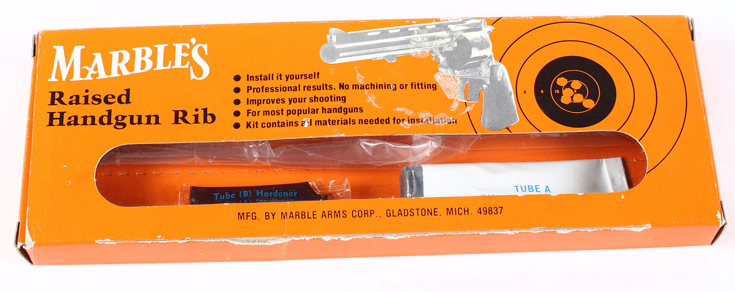 Marbles Raised Handgun rib, in original box, Full & Complete. Grade: Excellent - Value: 16 to 50