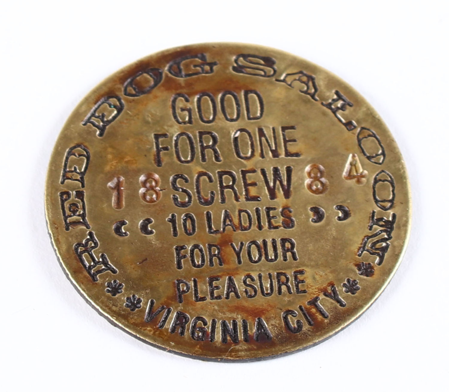 Brothel token, double sided, dated 1884. Grade: Excellent - Value: 20 to 60