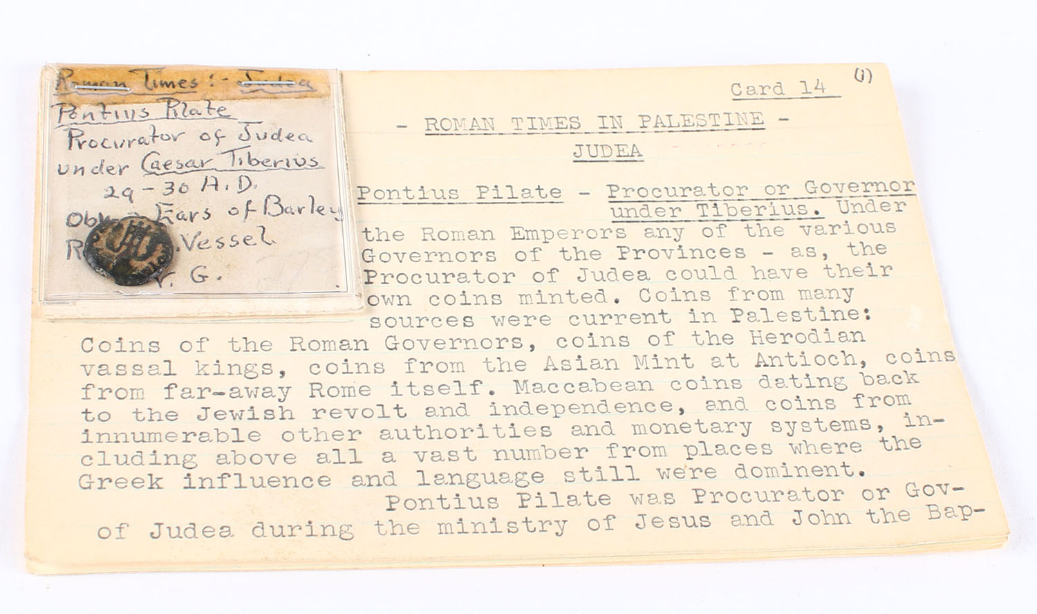 Ancient coin, Roman coin from Palestine, Pontius Pilate Procurator of Judea under Caesar Tiberius, 29-30AD, comes with cards explaining the history in detail. Grade: Good - Value: 20 to 200