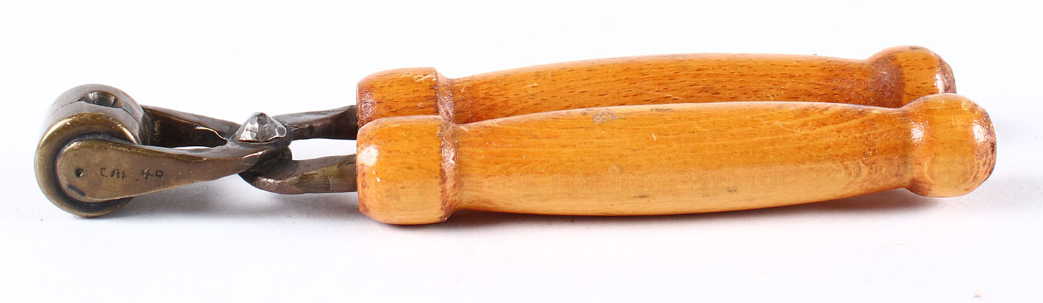 RARE! Howe Fur Co bullet molds, circa 1918-1950s, .40 cal., blonde wood handles. Grade: Excellent TQ - Value: 50 to 250