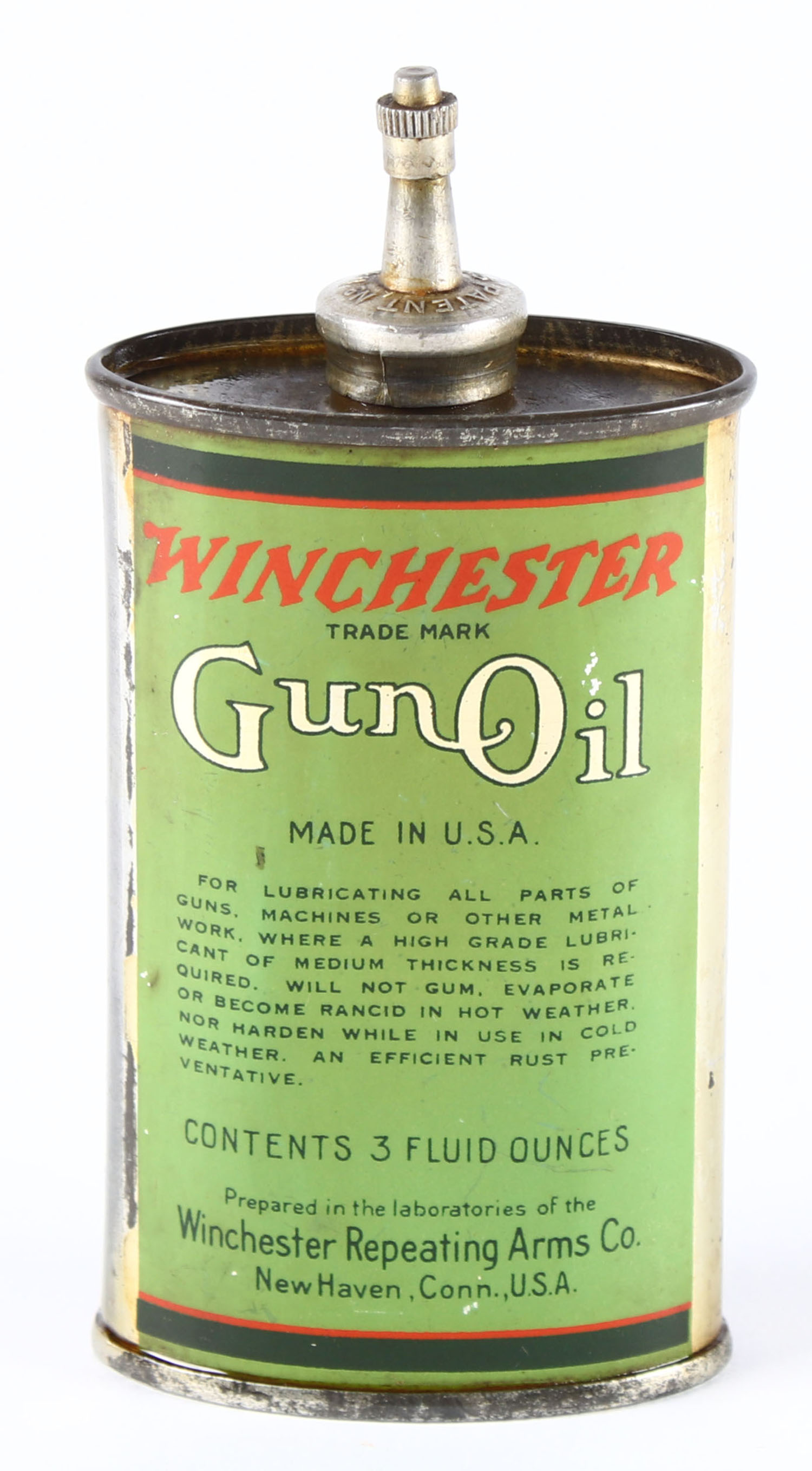 RARE! Winchester oil, tin, lead spout and cap, Empty but some leaking out. Grade: Excellent - Value: 70 to 300