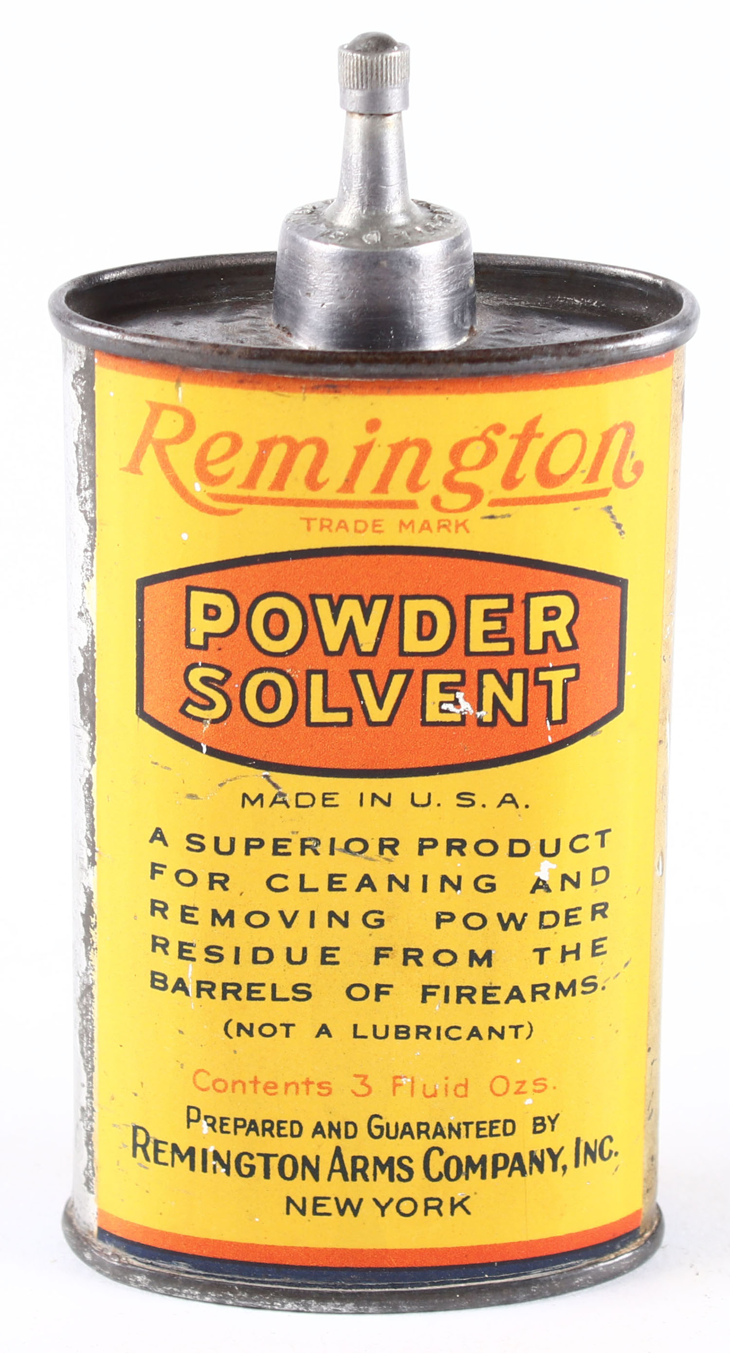 Remington oil tin, lead spout and cap , Empty. Grade: Excellent + - Value: 30 to 200
