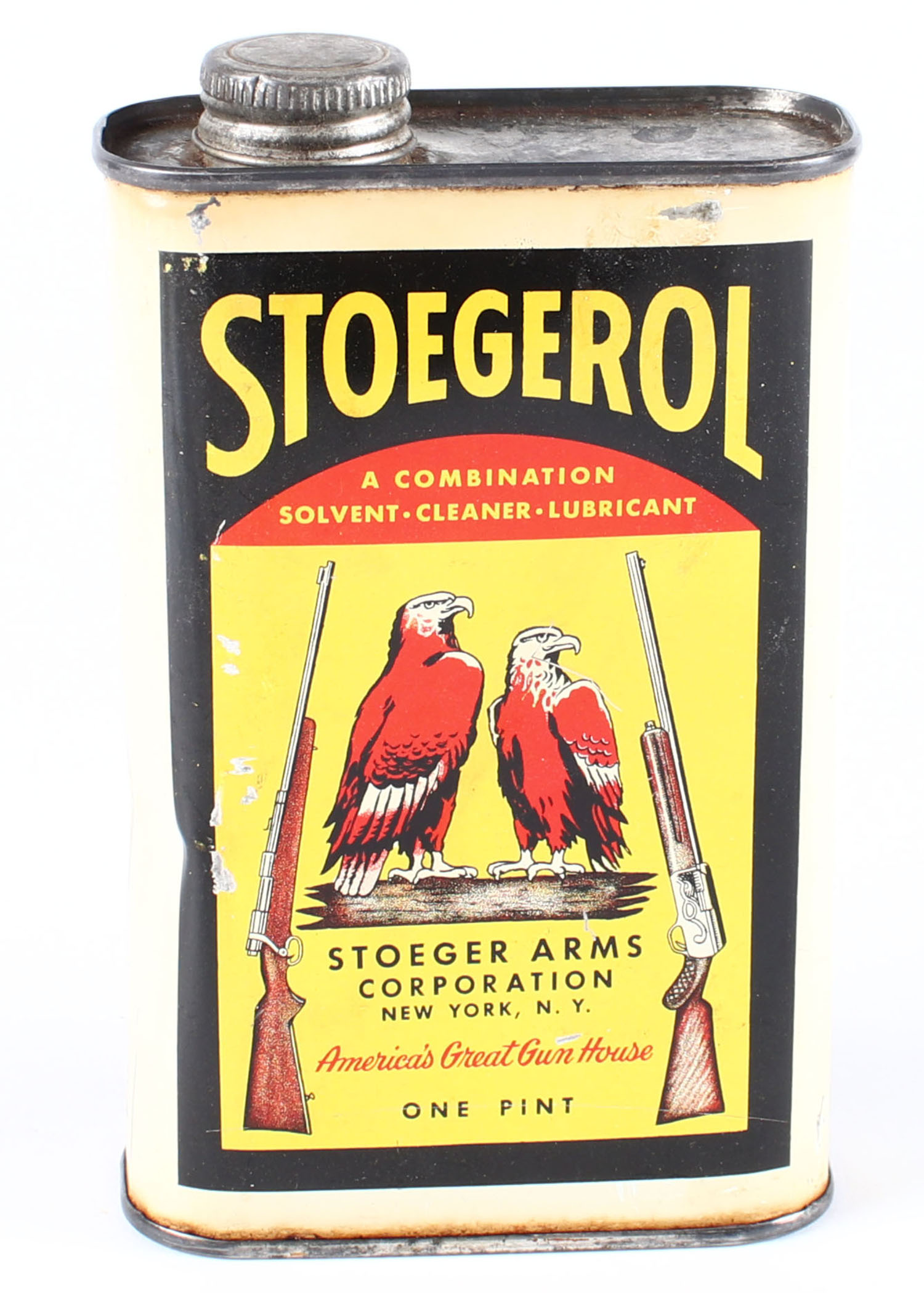 Large Stoegerol oil tin, metal cap , Empty. Grade: Excellent - Value: 10 to 300