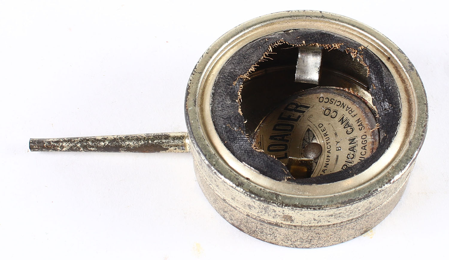 Antique American can Co. Quick Loader, center is separated from leather. Grade: Very Good - Value: 2 to 40