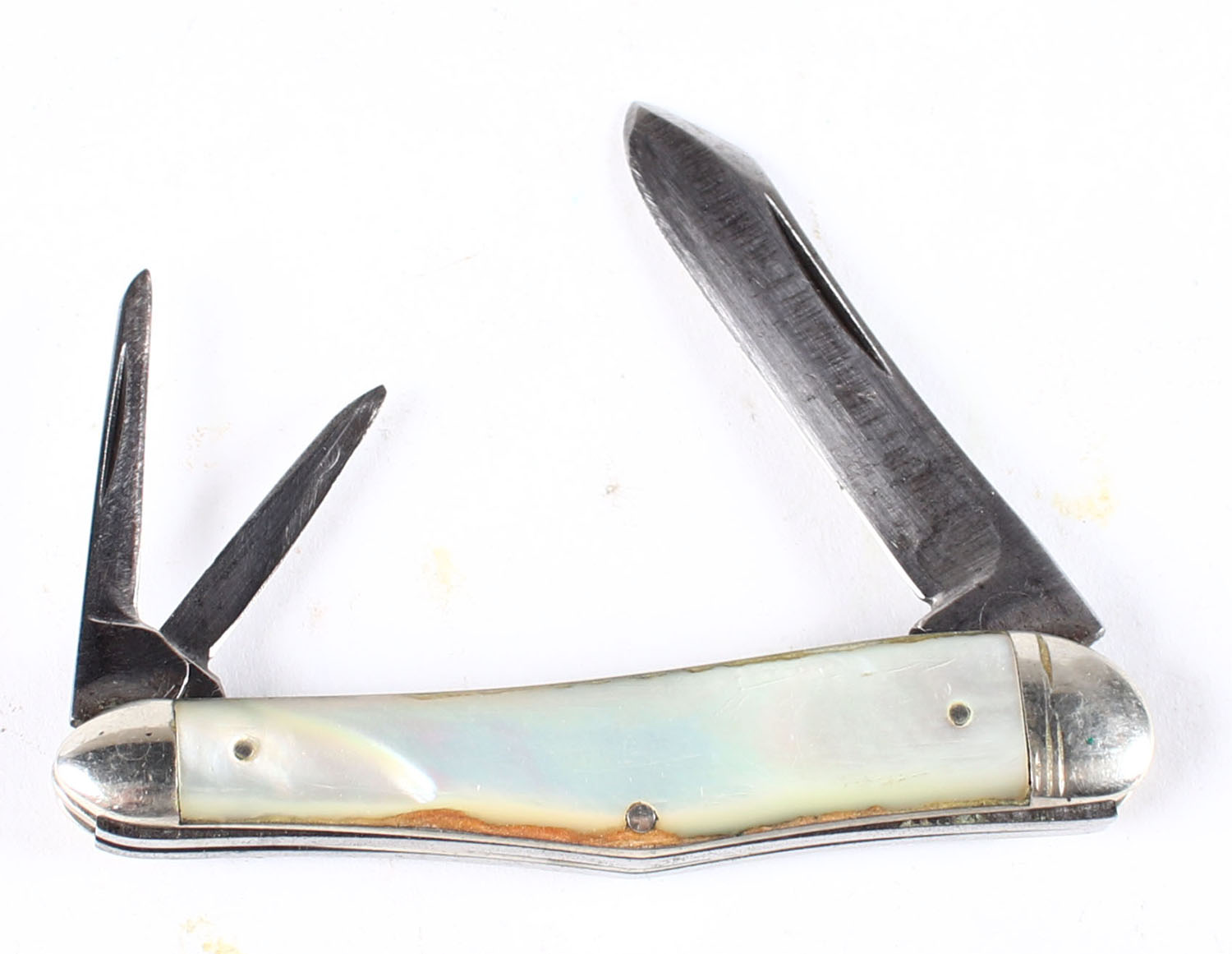 RARE! Original 1930s Remington knife, 3 blade knife #R6834 Pearl Scales. Some edge chipping to the scales. Grade: Very good. - Value: 100 to 200