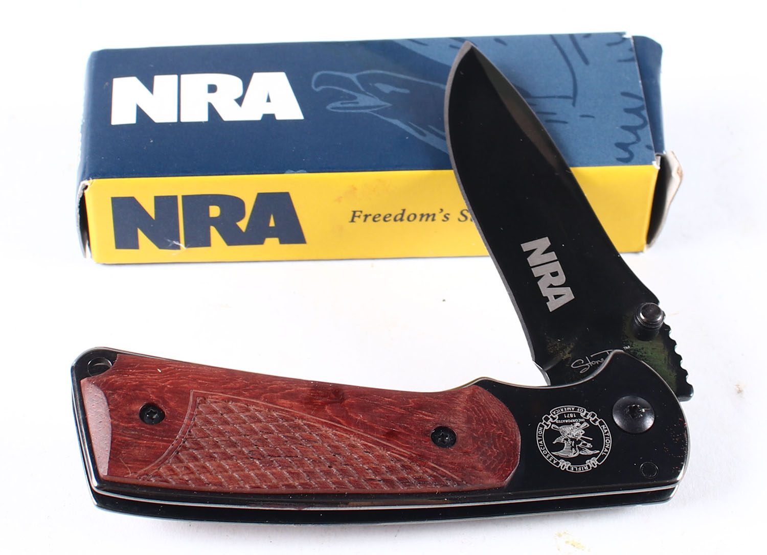 NRA folding knife, in original box, 2.5'' blade. Grade: Excellent - Value: 16 to 50