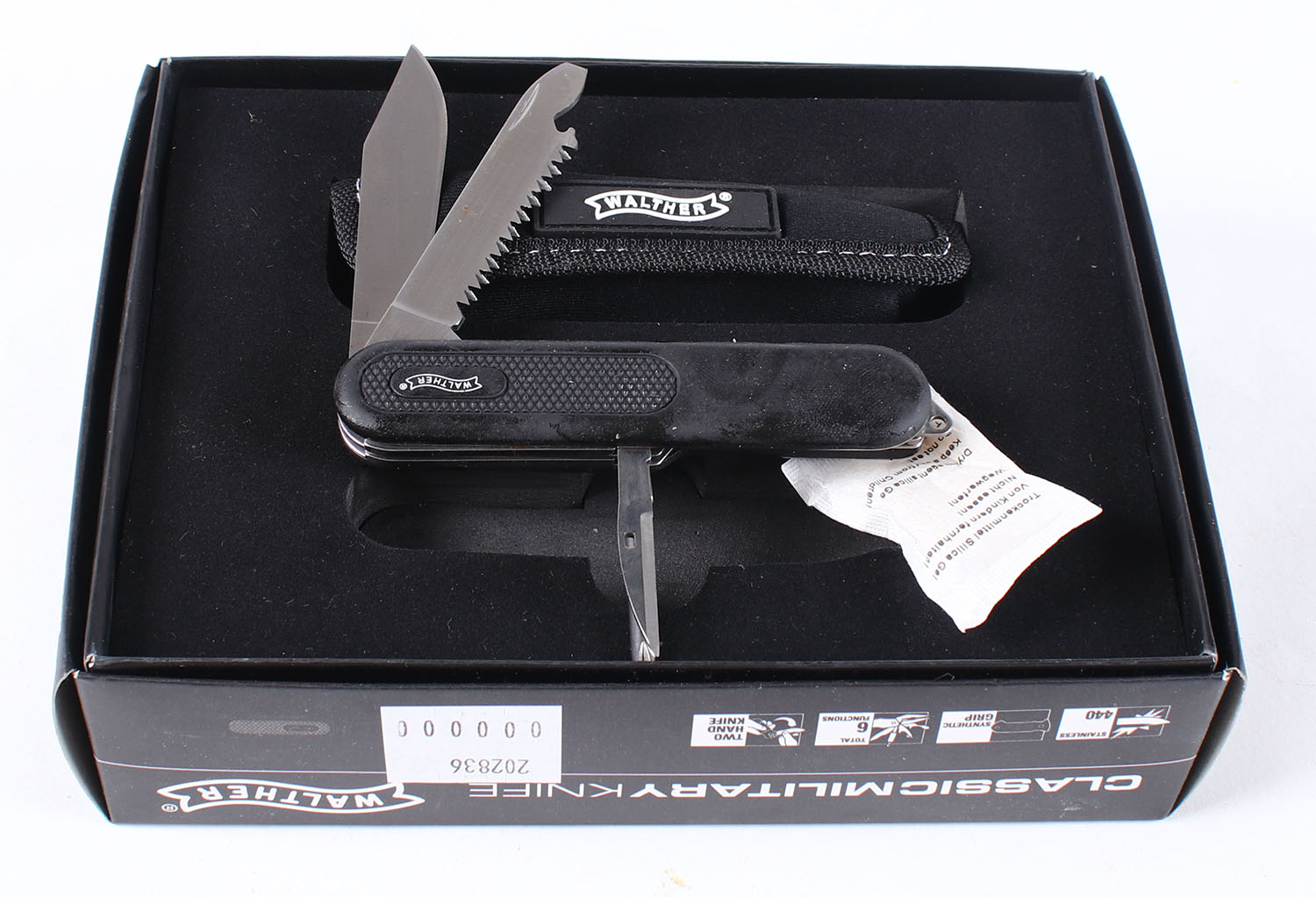 Walther Classic Military knife, in box, 6 functions. Grade: Excellent ++ - Value: 4 to 40