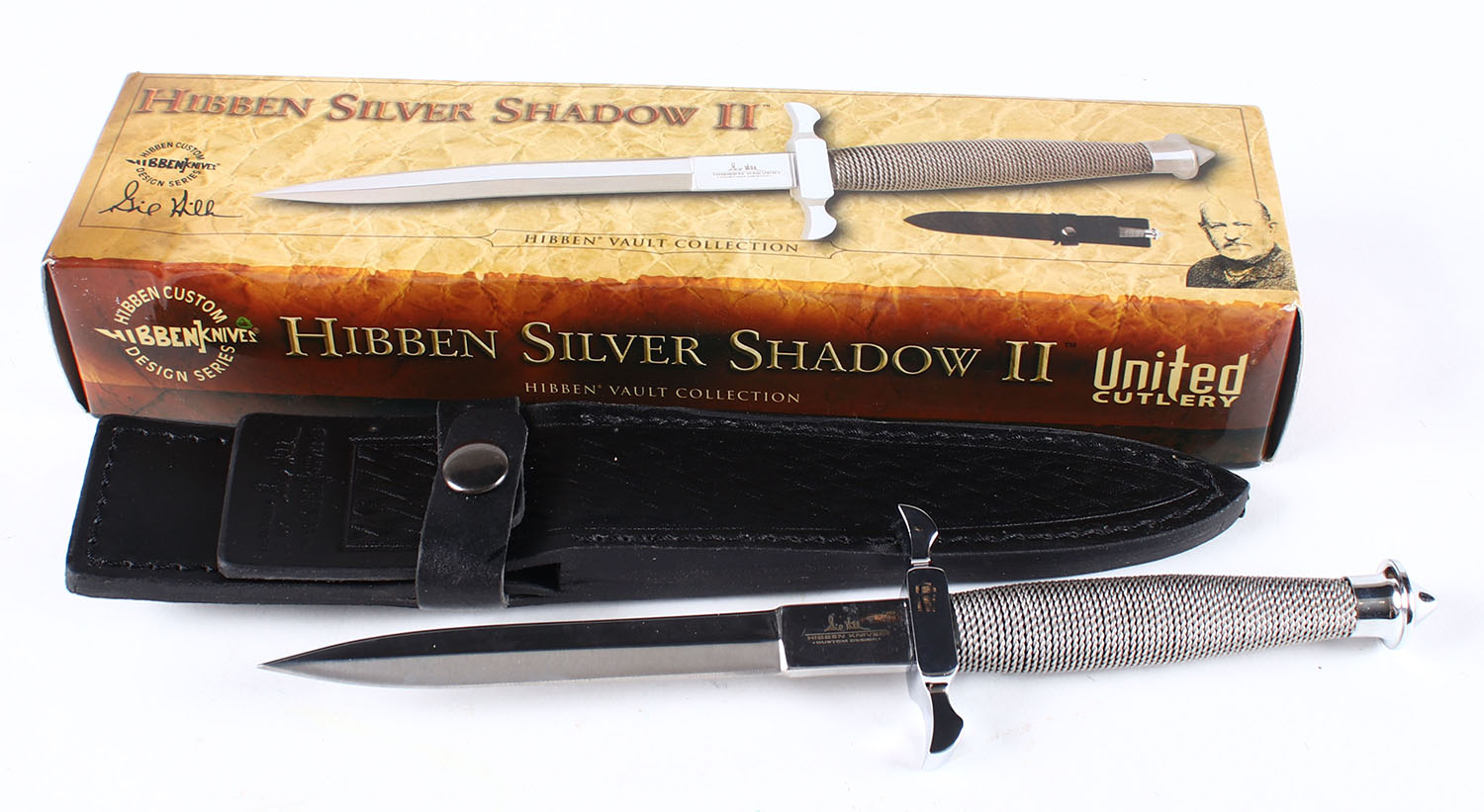 Hibben Silver Shadow II fixed blade knife, in original box, 5.5'' blade. Grade: Excellent ++ - Value: 16 to 50