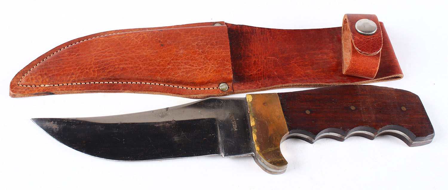Pakistan made fixed blade, in original leather sheath, 5'' blade. Grade: Excellent ++ - Value: 2 to 50
