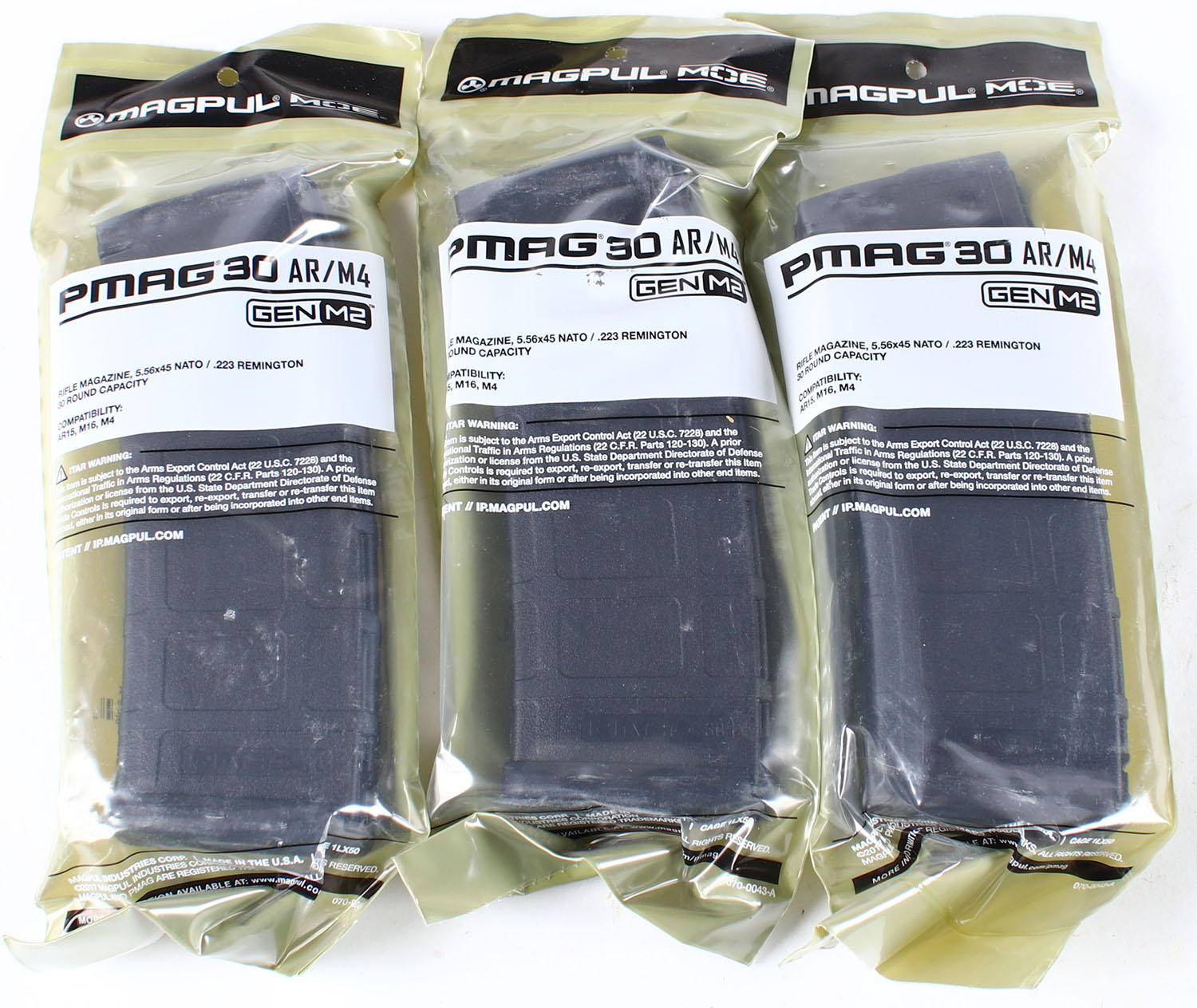 Lot of 3 Pmag 30 Ar/M4, 5.56 and 30 rd, sealed in plastic bag. Grade: Excellent ++ - Value: 20 to 60