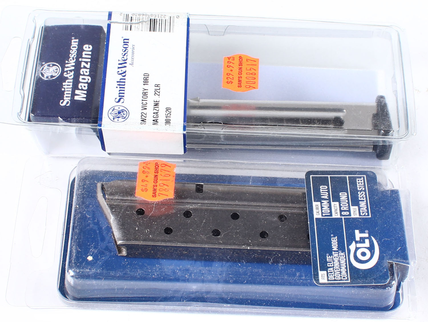 Lot of 2 pistol mags, S&W .22 LR and Colt 10mm auto 8 rd mag. Grade: Excellent - Value: 16 to 50