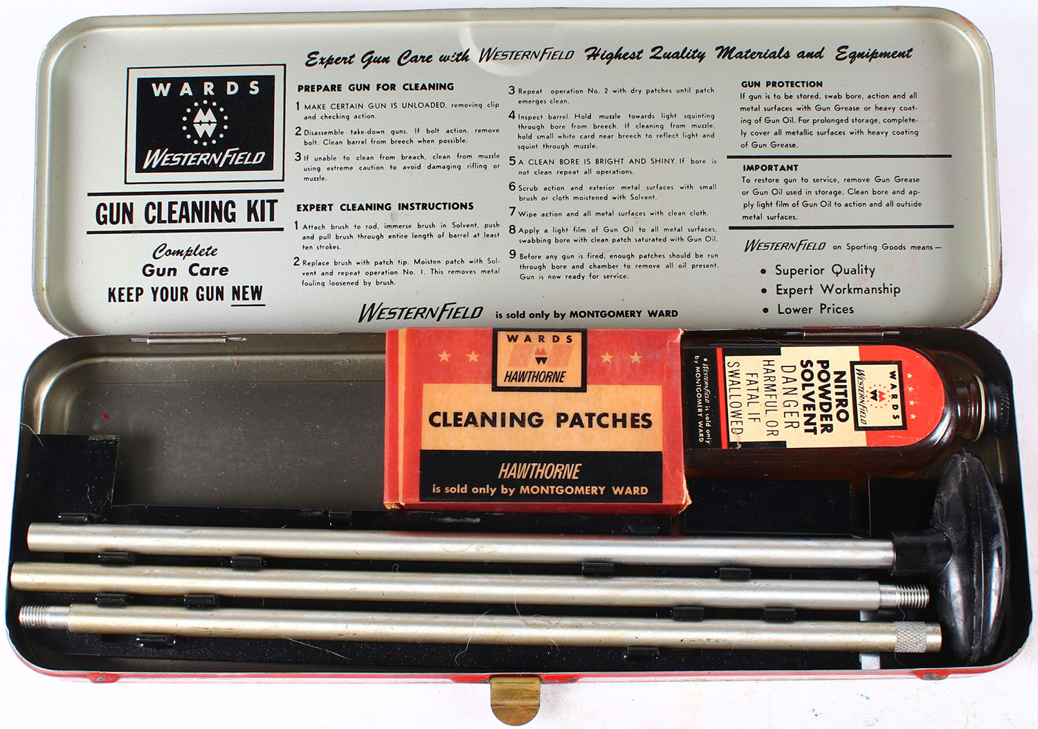 Wards Westernfield shotgun cleaning kit, partial, missing glass oil jar. Grade: Very Good ++ - Value: 4 to 40