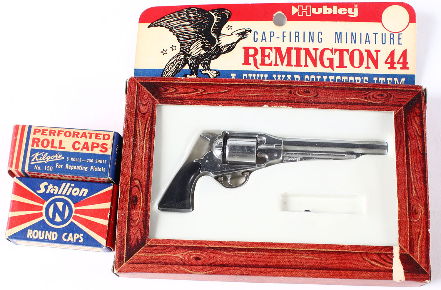 Hubley Rem 44 cap gun in original box with caps. Grade: Excellent - Value: 10 to 50