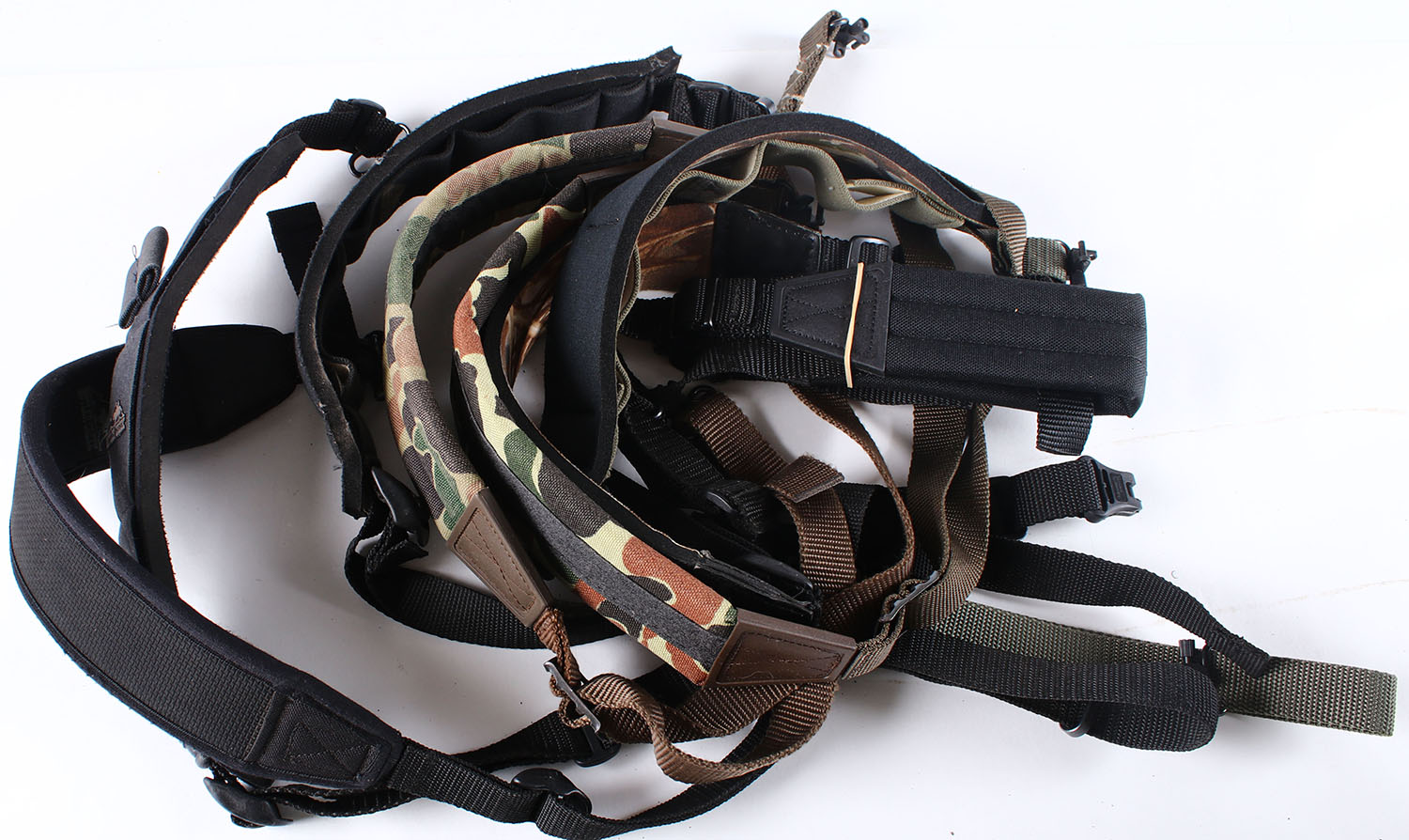 Lot of 8 nylon/canvas padded shoulder straps, modern, all solid. Grade: Excellent - Value: 10 to 50